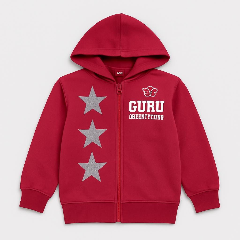 Questa giacca con zip di marca GURU è un capo imperdibile per i piccoli amanti dello stile! Di un vivace colore bordeaux, presenta tre stelle argentate che brillano e aggiungono un tocco di originalità. Realizzata in un morbido tessuto, offre comfort e calore perfetti per le avventure quotidiane. La capiente felpa con cappuccio protegge dalle brezze fresche. Nonostante sia un capo usato, si presenta in ottime condizioni e pronta per essere indossata da un piccolo trendsetter!