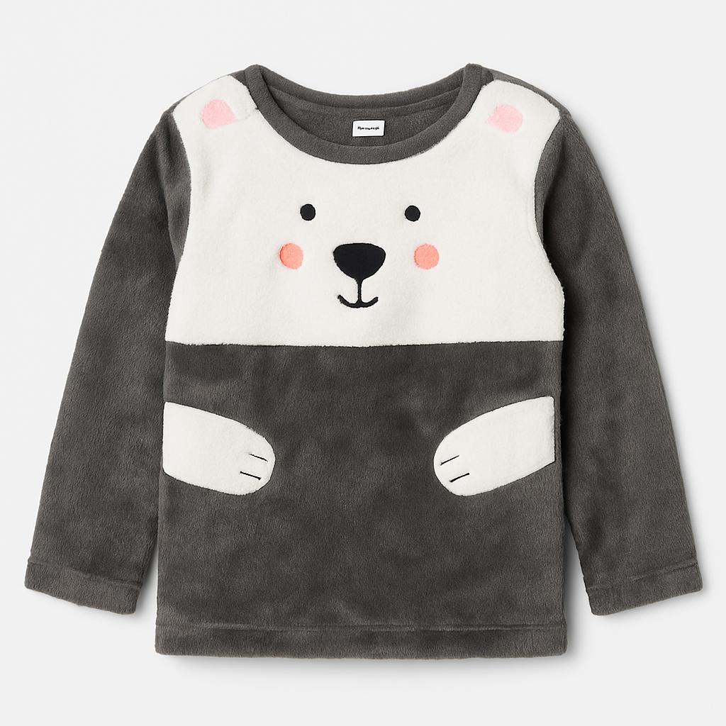 Scopri questo adorabile maglione in morbido pile, perfetto per i giorni più freschi! Con il suo design che richiama un tenero orsetto, presenta un simpatico volto ricamato e orecchie tridimensionali sulle spalle. I colori neutri di grigio e bianco offrono un tocco di dolcezza, mentre le maniche lunghe garantiscono calore e comfort. Questo capo usato è in ottime condizioni e sarà amato da ogni piccolo amante degli animali! Ideale per creare outfit coziosi per le giornate di giochi o passeggiate nel parco. Un must-have per un look tenero e divertente!