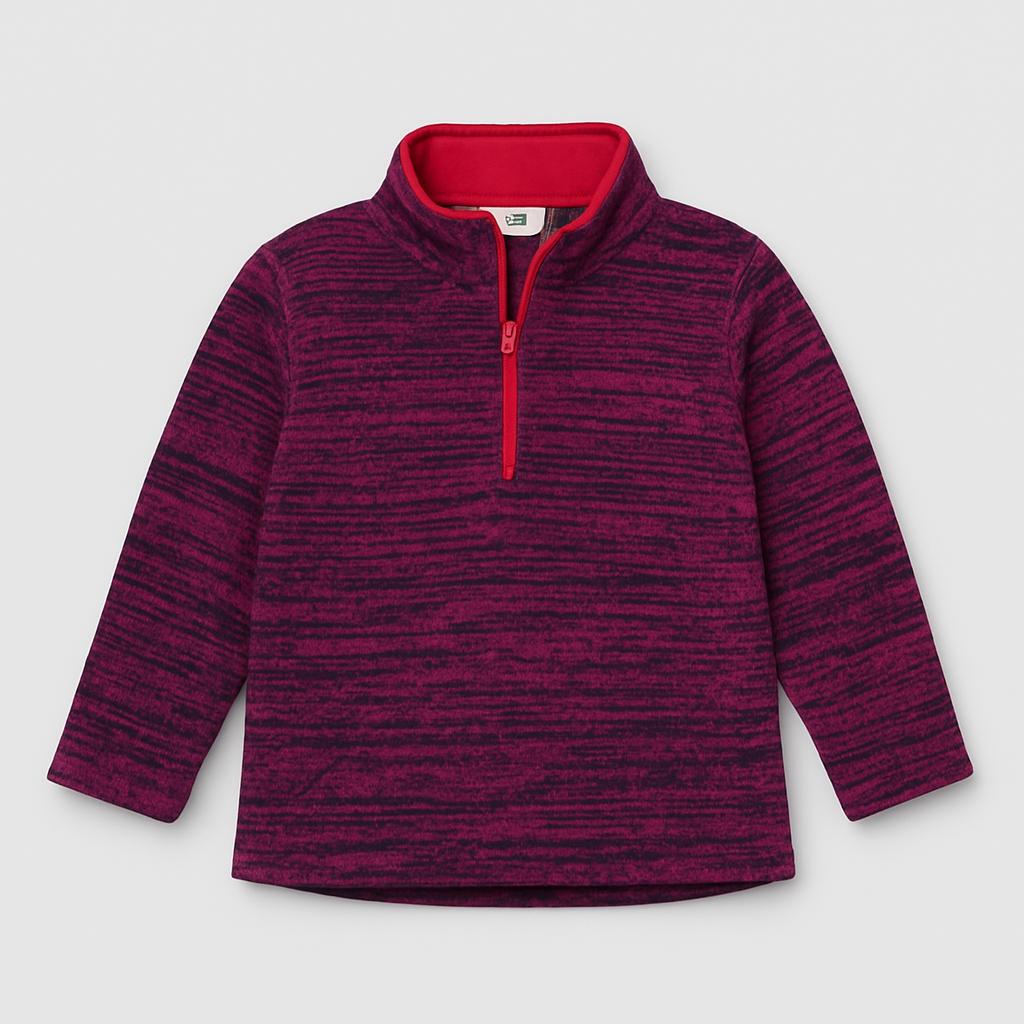 Questo caldo e accogliente pullover in tonalità fucsia e viola è perfetto per le avventure all'aperto nei giorni freschi! Realizzato in morbida e calda felpa, presenta un pratico colletto con mezza zip che rende facile indossarlo e toglierlo. Il design a righe sottili dà un tocco di vivacità al look, mentre le maniche lunghe assicurano calore e comfort. Nonostante sia un capo usato, si presenta in ottime condizioni, pronto per accompagnare le piccole nella loro quotidianità con stile e allegria. Un must-have per ogni guardaroba!