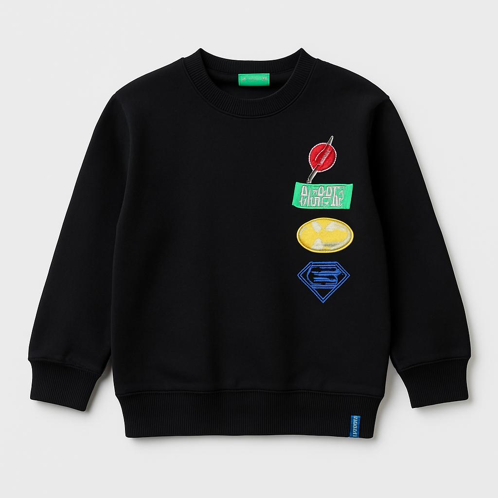 Questo fantastico maglione nero in cotone è perfetto per i piccoli supereroi! Con il suo design accattivante, presenta ricami colorati di emblematici simboli di supereroi come Batman, Superman e Green Lantern, portando un tocco di avventura nel guardaroba. Le maniche lunghe e il bordo a costine garantiscono comfort e calore, ideali per le giornate fresche. Nonostante sia un capo usato, si trova in ottime condizioni, pronto per essere indossato in ogni occasione, dalle avventure all'aperto alle merende con gli amici. Un must-have per i bambini che amano divertirsi con stile!
