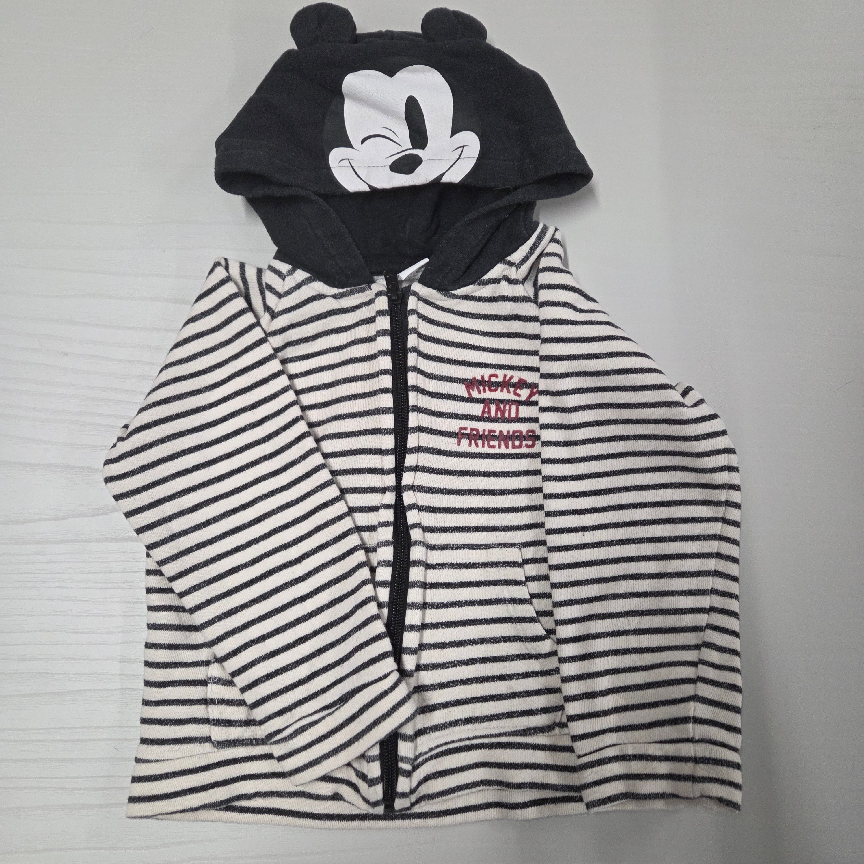Questo adorabile pile con cappuccio di Mickey Mouse è perfetto per tenere il tuo piccolo al caldo e in stile! Con una base a righe bianco e nero, il capo è impreziosito da un simpatico cappuccio con le orecchie di Mickey, che farà sorridere ogni bambino. La scritta "Mickey and Friends" sul davanti aggiunge un tocco di magia Disney. Morbido e accogliente, è ideale per le avventure invernali o le giornate di gioco al coperto. Nonostante sia usato, si presenta in ottime condizioni, pronto a portare un sorriso nel guardaroba del tuo bambino!