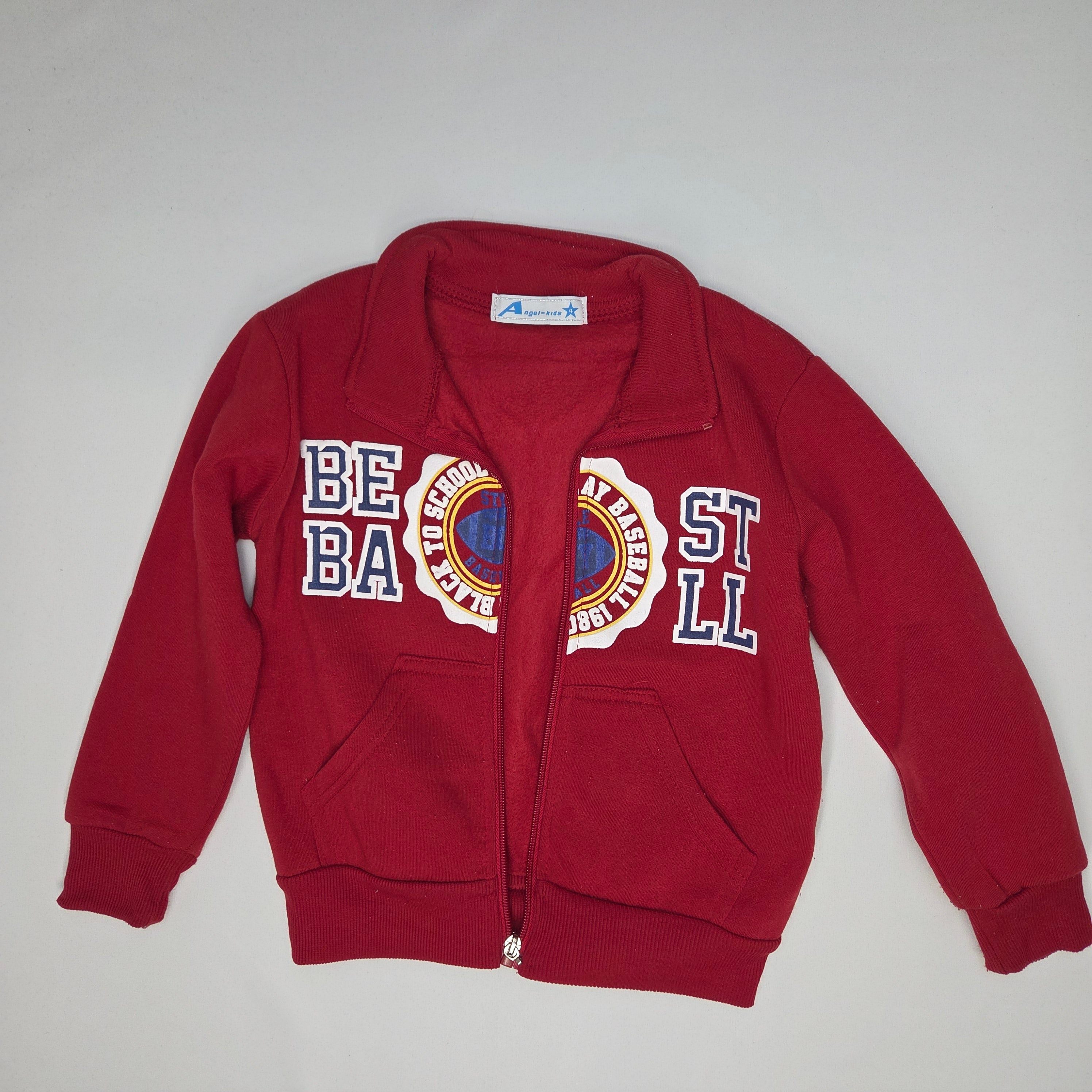 Questo elegante e vivace giubbotto rosso è perfetto per i piccoli amanti dello sport! Realizzato in morbido cotone, il modello presenta una comoda zip e un design che richiama il mondo del baseball, con scritte grandi e colorate sul davanti. Le maniche lunghe e il colletto alto offrono calore e comfort nelle giornate fresche. Anche se usato, si presenta in ottime condizioni, rendendolo un'aggiunta alla moda e pratica per il guardaroba dei tuoi bimbi. Ideale per avventure all'aperto o per un look casual e trendy!