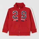 Questo vivace cardigan rosso è perfetto per i piccoli avventurieri! Con una chiusura a zip e un logo sporty "29" sul petto, aggiungerà un tocco di energia e divertimento al guardaroba. Le maniche lunghe con dettagli bianchi donano un look trendy e dinamico, ideale per le giornate fresche o per dopo il gioco. Nonostante sia usato, si presenta in ottime condizioni, pronto per nuove avventure! Un capo versatile e pratico per ogni bambino che ama sentirsi alla moda e a proprio agio.