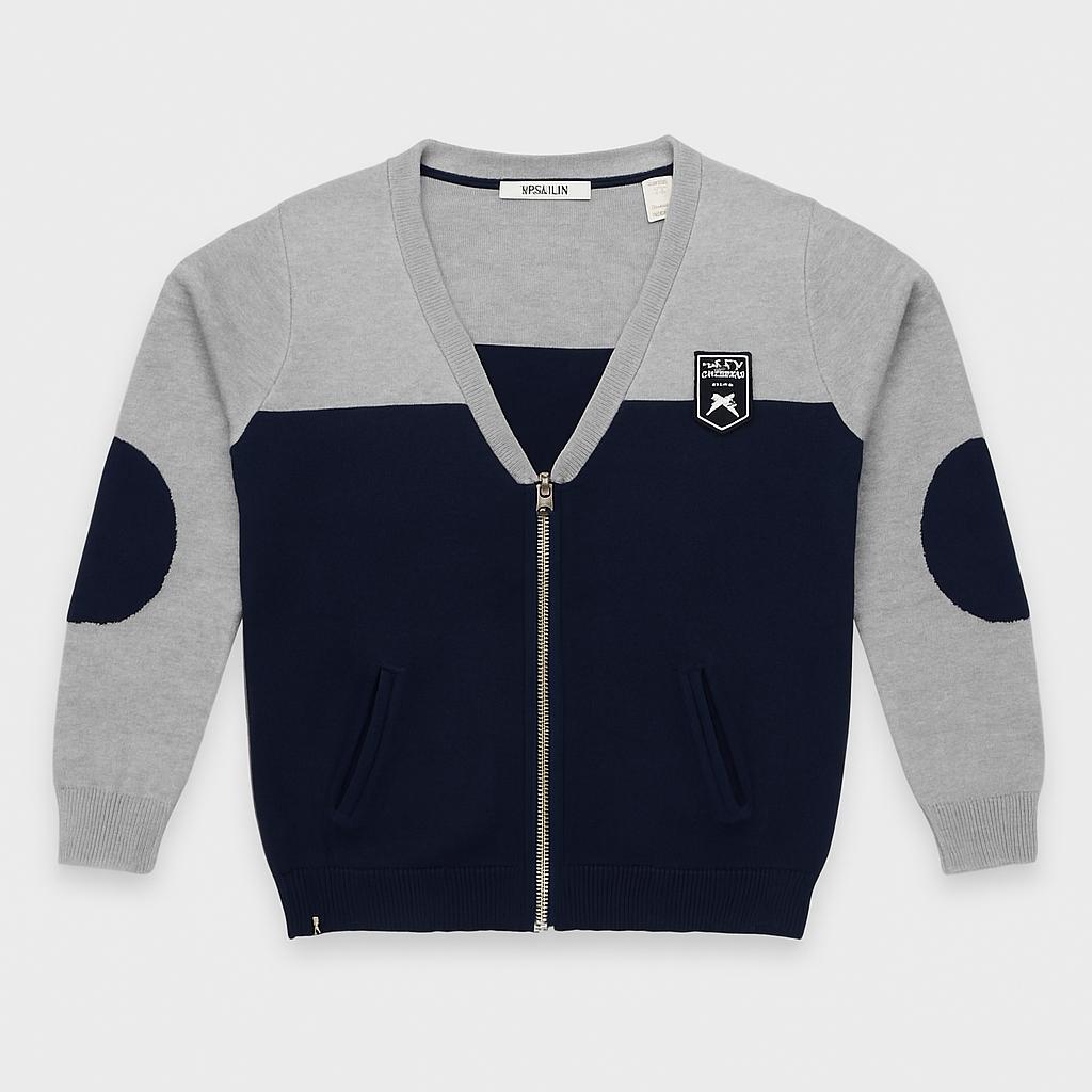 Questo adorabile cardigan di marca OVS è il capo perfetto per ogni piccolo! Realizzato in una morbida maglia, offre calore e comfort durante le fresche giornate autunnali. Il suo elegante design bicolore, grigio chiaro e blu navy, è impreziosito da un patch stilizzato sul petto, che aggiunge un tocco sportivo e trendy. Le maniche sono decorate con raffinati rinforzi che richiamano il colore del cardigan, mentre la chiusura a zip ne facilita l’indosso. Anche se usato, questo cardigan è in ottime condizioni, pronto a vestire il tuo bambino con stile e praticità. Un must-have per i piccoli esploratori!