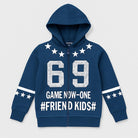 Questo fantastico hoodie blu di marca Friends Kids è perfetto per i piccoli amanti dello stile sportivo! Con la sua vivace grafica che include il numero "69" e stelline bianche, il capo trasmette un'energia giocosa. La comoda zip e il cappuccio lo rendono ideale per le giornate più fresche, mentre il morbido cotone assicura comfort durante ogni avventura. Nonostante sia usato, è in ottime condizioni e pronto a diventare il nuovo preferito del tuo bambino. Perfetto per outfit da giorno o per un look casual-chic!
