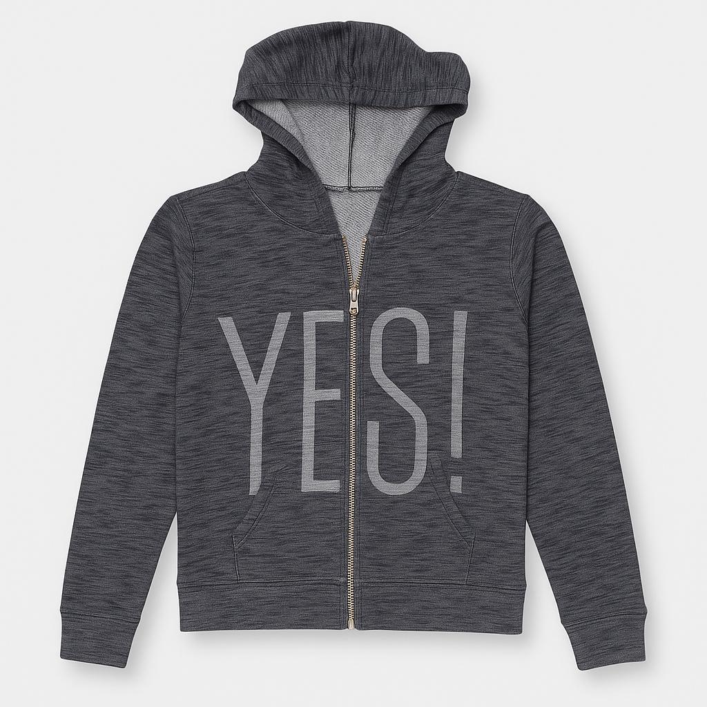 Questa originale felpa con cappuccio è un must-have per i piccoli esploratori! Realizzata in un morbido tessuto grigio mélange, offre comfort e calore nelle fresche giornate. L'eco del messaggio “YES!” stampato sul davanti esprime entusiasmo e positività, rendendo ogni outfit giovanile e vivace. La zip centrale facilita l'indossarla e toglierla, mentre il cappuccio protegge dalle correnti d'aria. Anche se è un capo usato, si presenta in ottime condizioni, perfetta per avventure all'aria aperta o momenti di relax a casa. Un'aggiunta versatile e alla moda per il guardaroba dei tuoi bambini!