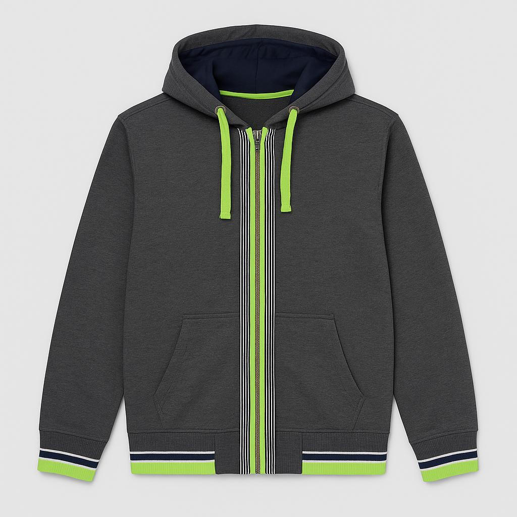 Questa felpa con cappuccio grigia è perfetta per i piccoli esploratori! Il design sportivo è arricchito da dettagli in un vivace verde lime, creando un bel contrasto. La chiusura a zip e il cappuccio la rendono ideale per le giornate più fresche, proteggendo il tuo bimbo con stile. I polsini a righe e la finitura curata aggiungono un tocco trendy e giovanile. Nonostante sia usata, la felpa è in ottime condizioni e pronta per accompagnare il tuo bambino in tutte le sue avventure! Un must per ogni guardaroba invernale!