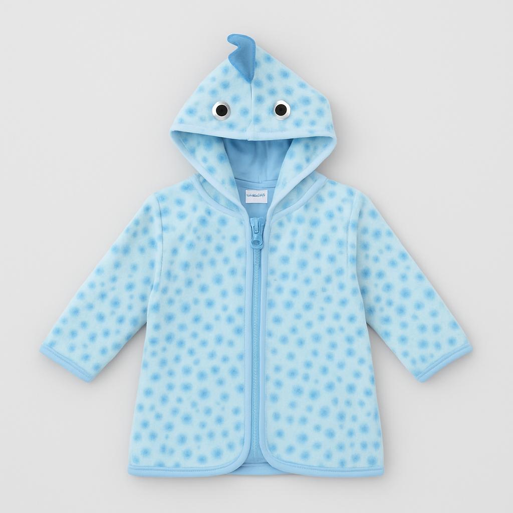 Questo adorabile giacchino in morbido pile blu è perfetto per tenere caldo il tuo piccolo durante le giornate fresche! Con il suo design a fantasia di pozzanghere e un cappuccio che ricorda un simpatico pesciolino, aggiunge un tocco di gioia e fantasia a ogni outfit. La chiusura con zip è comoda e pratica, facilitando l’indossarlo e toglierlo in un attimo. Le maniche lunghe garantiscono comfort e calore, mentre il tessuto delicato si prende cura della pelle sensibile dei bambini. Nonostante sia usato, è in ottime condizioni e pronto per accompagnare le avventure del tuo tesoro! Un must per i piccoli amanti del mare!