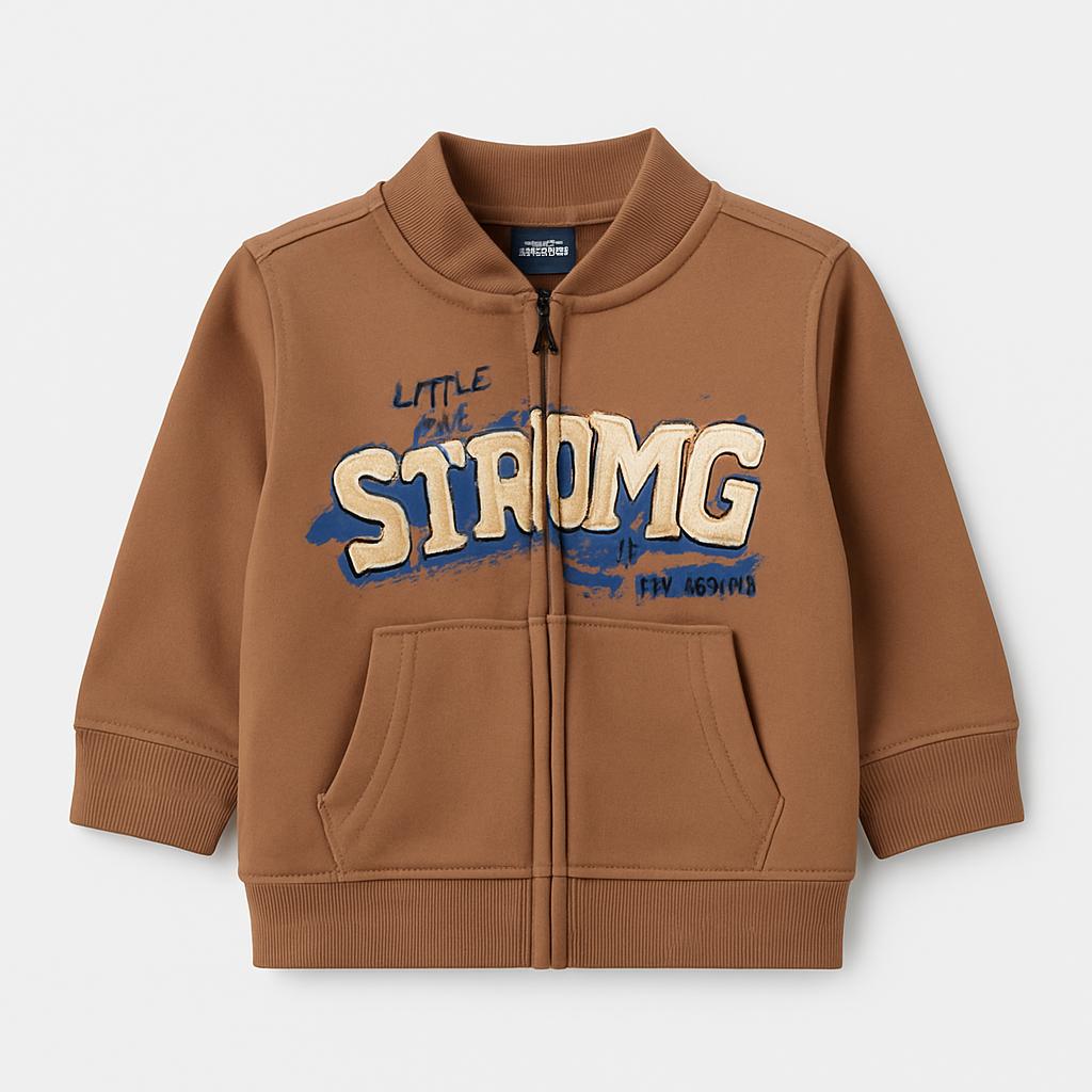 Questo caldo e accogliente giubbotto della marca Virginia è perfetto per i piccoli eroi! Realizzato in morbido materiale, il suo caldo colore marrone avvolge il tuo bambino in un abbraccio confortevole. Sul davanti, la scritta "Little but STRONG" in una vivace combinazione di blu e argentato, aggiunge un tocco audace e giocoso. Con chiusura a zip e colletto alto, è ideale per le giornate fresche, permettendo al tuo piccolo di esplorare il mondo all'aria aperta con stile. Essendo usato, si presenta in ottime condizioni, pronto a fare compagnia a nuove avventure!