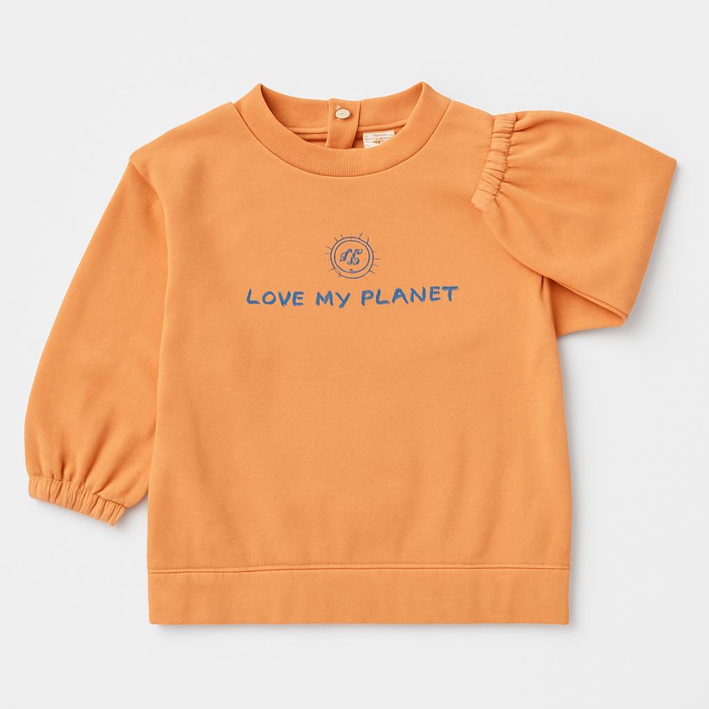 Questa adorabile maglietta arancione è perfetta per le piccole eco-sostenitrici! Con un messaggio affettuoso "LOVE MY PLANET", trasmette un amore per la natura in modo giocoso. Le maniche a sbuffo aggiungono un tocco di stile e comfort, mentre il tessuto morbido garantisce libertà di movimento in ogni avventura. Nonostante sia un capo usato, si presenta in ottime condizioni, rendendola ideale per outfit casual o giornate di gioco. Un must-have per ogni piccola consapevole che desidera esprimere il proprio stile!