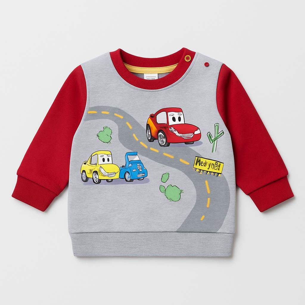 Questo allegro felpa grigia è perfetta per i piccoli amanti delle corse! Con maniche rosse a contrasto, sfoggia una graziosa stampa di auto vivaci su una strada avventurosa. I dettagli colorati e le appliqué divertenti la rendono un capo giocoso e accattivante. Realizzata in morbido cotone, offre comfort e libertà di movimento per le giornate piene di esplorazioni e giochi all’aperto. Nonostante sia usata, è in ottime condizioni e pronta per accompagnare ogni piccola avventura! Un'aggiunta irresistibile al guardaroba di ogni mini pilota!
