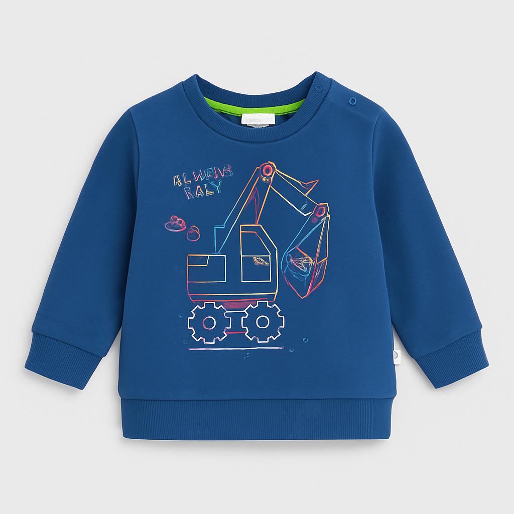 Questo adorabile pullover blu è perfetto per i piccoli amanti dei cantieri! Realizzato in un morbido cotone, il maglioncino presenta un divertente e colorato disegno di un escavatore, accompagnato dalla scritta “ALWAYS BOY”. Le maniche lunghe e il taglio comodo garantiscono calore e libertà di movimento durante le avventure quotidiane. Con due bottoncini sulla spalla per una facile vestibilità, questo capo usato si trova in ottime condizioni e sarà un'aggiunta alegra al guardaroba di ogni piccolino! Ideale per giocare e divertirsi, senza dimenticare il comfort!
