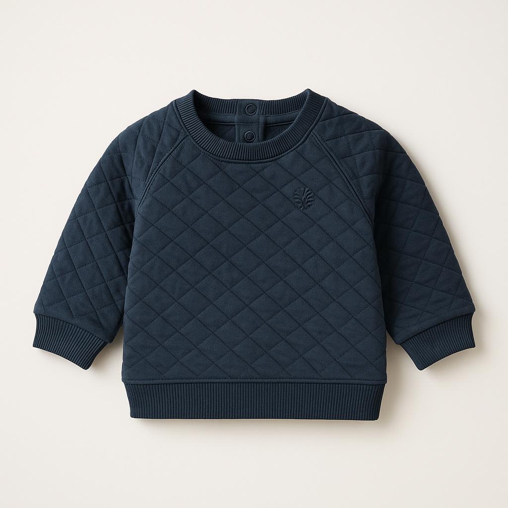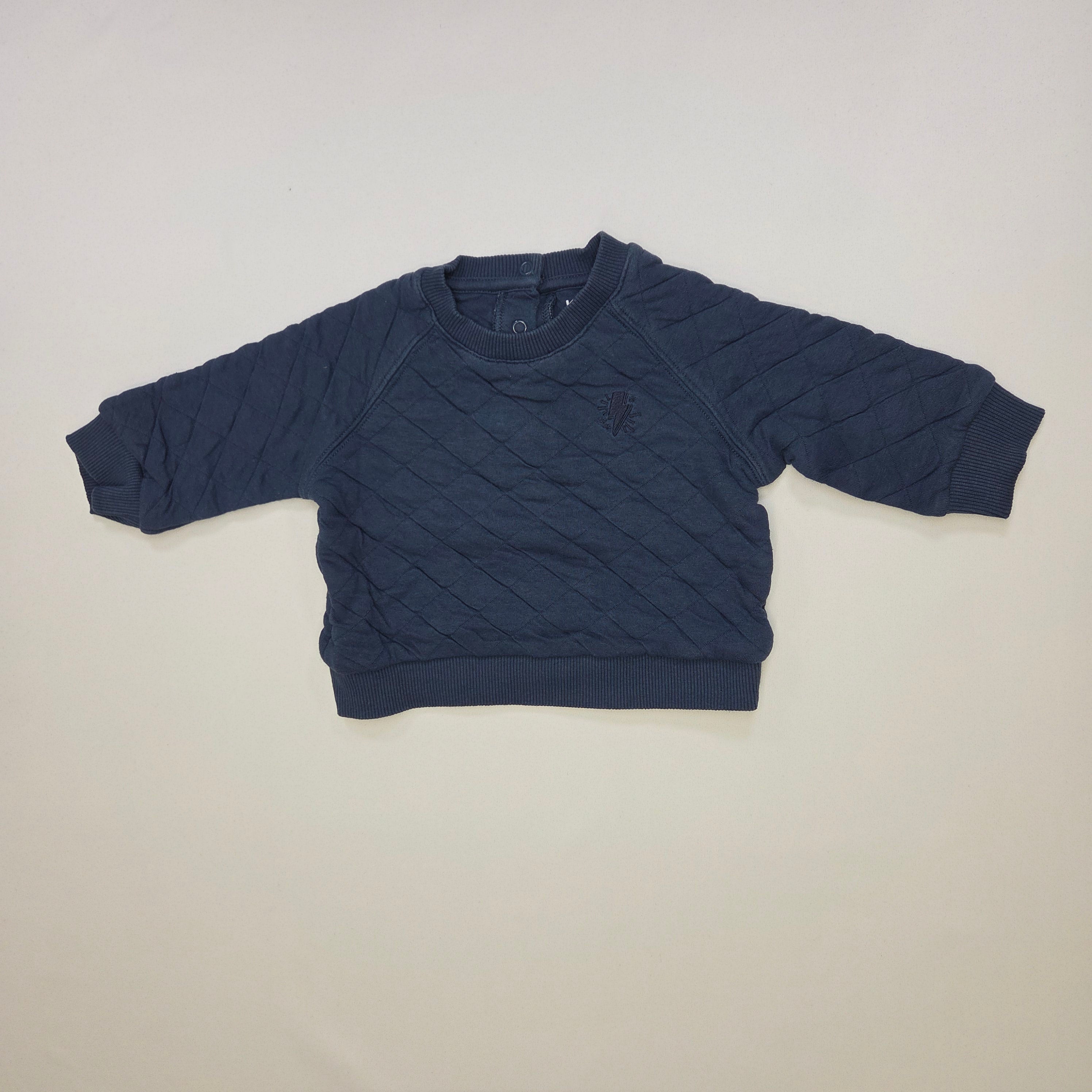 Questo morbido e accogliente pullover in cotone di colore blu navy è il compagno perfetto per le avventure autunnali dei più piccoli! Con un delizioso motivo a rombi, il pullover regala un tocco di eleganza al look casual. Le maniche lunghe e il colletto a coste assicurano comfort e calore durante le giornate più fresche. Facile da abbinare a jeans o pantaloni, questo capo, pur essendo usato, è in ottime condizioni e pronto a rendere il guardaroba del tuo bambino caldo e stiloso. Un must-have per un outfit curato e dinamico!