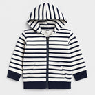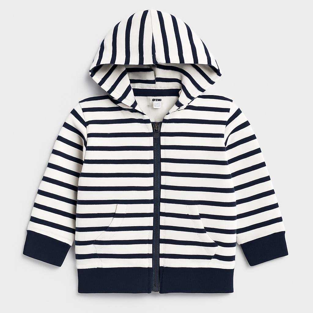 Questa simpatica felpa a righe per bambini è perfetta per le avventure quotidiane! Realizzata in morbido cotone, presenta una combinazione di righe bianche e blu navy che conferisce un tocco nautico. Il cappuccio e le tasche laterali la rendono comoda e pratica per ripararsi dal vento. Con la sua chiusura a zip, è facile da indossare e togliere. Nonostante sia stata amata da un piccolo, si presenta in ottime condizioni, pronta per accompagnare nuove scoperte! Un capo versatile e alla moda per ogni piccolo esploratore!