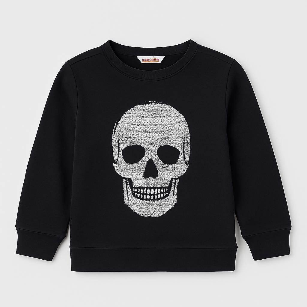 Questo originale e affascinante maglione nero è perfetto per i piccoli amanti del brivido! Realizzato in morbido cotone, garantisce comfort e calore durante le giornate più fresche. La grande stampa di un teschio shimmering sul davanti conferisce un tocco di mistero e stile, rendendo questo capo unico e alla moda. Con le sue maniche lunghe e il taglio confortevole, è ideale per essere indossato in libertà, durante qualsiasi avventura. Anche se usato, si presenta in ottime condizioni ed è pronto per essere sfoggiato da un giovane trendsetter! Un must-have per i piccoli ribelli!