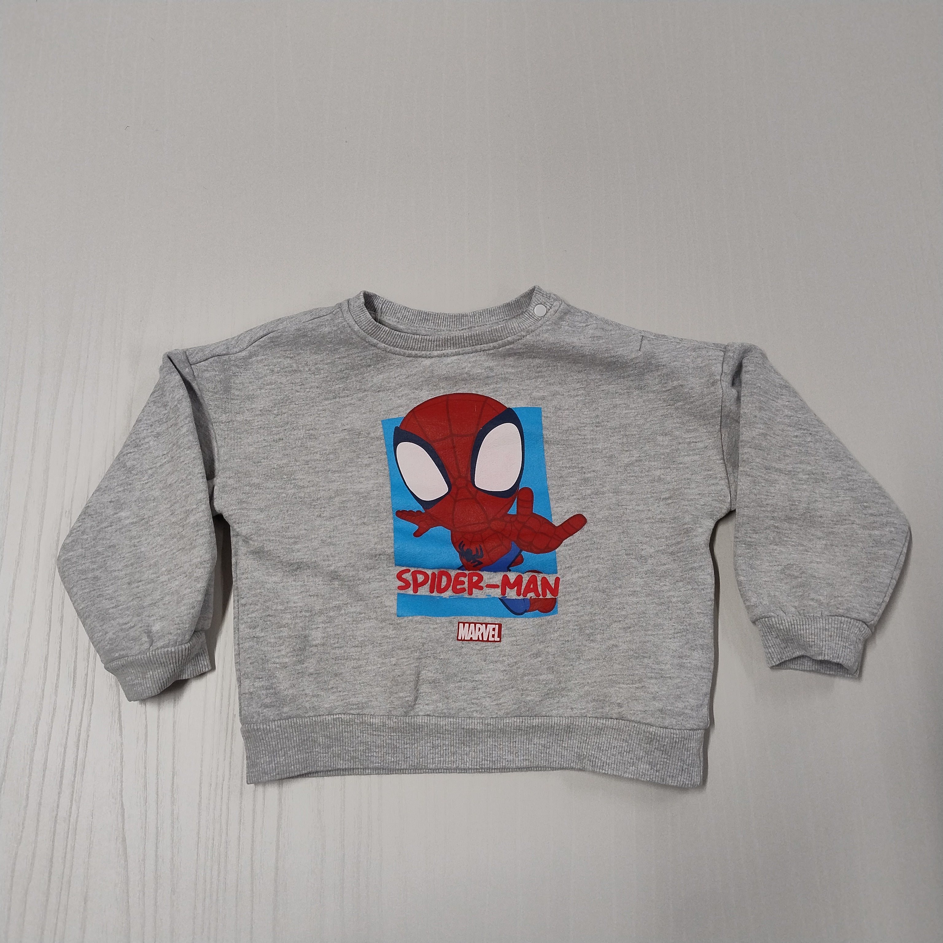 Questa adorabile felpa grigia per bambini è un vero sogno per i piccoli fan di Spider-Man! Realizzata in morbido cotone, offre comfort e calore per tutte le avventure quotidiane. Sul davanti, il famosissimo supereroe è raffigurato in un vivace design, pronto a ispirare giochi creativi e fantasiosi. Le maniche lunghe e il collo rotondo garantiscono una vestibilità comoda, perfetta per l'uso quotidiano. Nonostante sia un capo usato, mantiene un aspetto fresco e divertente, ideale per i piccoli avventurieri che adorano stupire con stile!