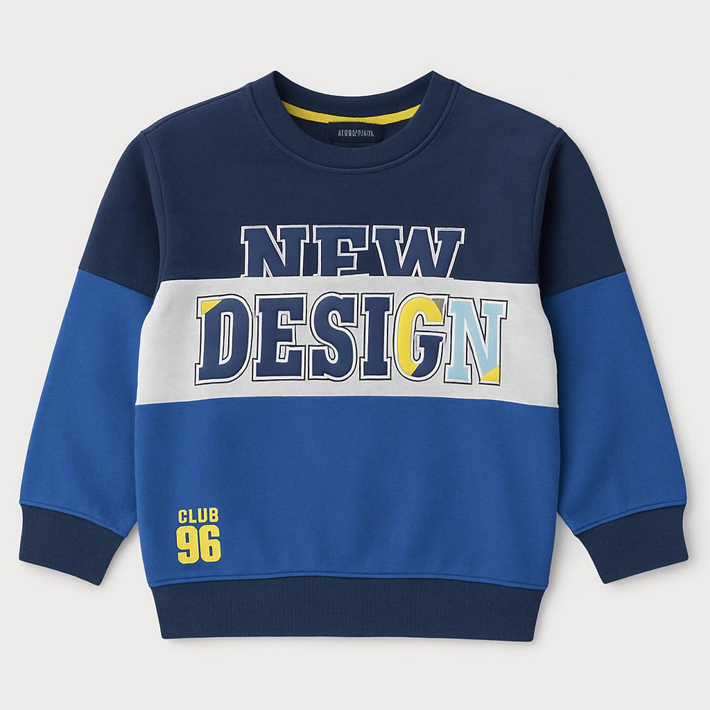 Questo pullover di marca, con il suo design accattivante, è perfetto per i piccoli esploratori! Realizzato in un morbido tessuto, presenta una vivace combinazione di blu, bianco e grigio. La scritta "NEW DESIGN" in bold su un contrasto di colori dona un tocco moderno e vivace, mentre il numero "96" sul lato porta un'aria sportiva. Le maniche lunghe e il taglio comodo garantiscono calore e libertà di movimento. Sebbene sia un capo usato, si presenta in ottime condizioni, pronto per accompagnare le avventure quotidiane di ogni bambino con stile e comfort!