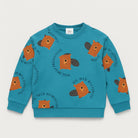 Questo adorabile pullover è perfetto per le piccole esploratrici! Realizzato in morbido cotone, il suo vivace azzurro è adornato da simpatici castori e la scritta "FUN WILD ADVENTURE". Le maniche lunghe e il taglio comodo garantiscono calore e comfort durante le giornate più fresche. Nonostante sia un capo usato, si presenta in ottime condizioni, pronto a dare vita a nuove avventure! Un must-have per i bambini che amano giocare con stile e fantasia!