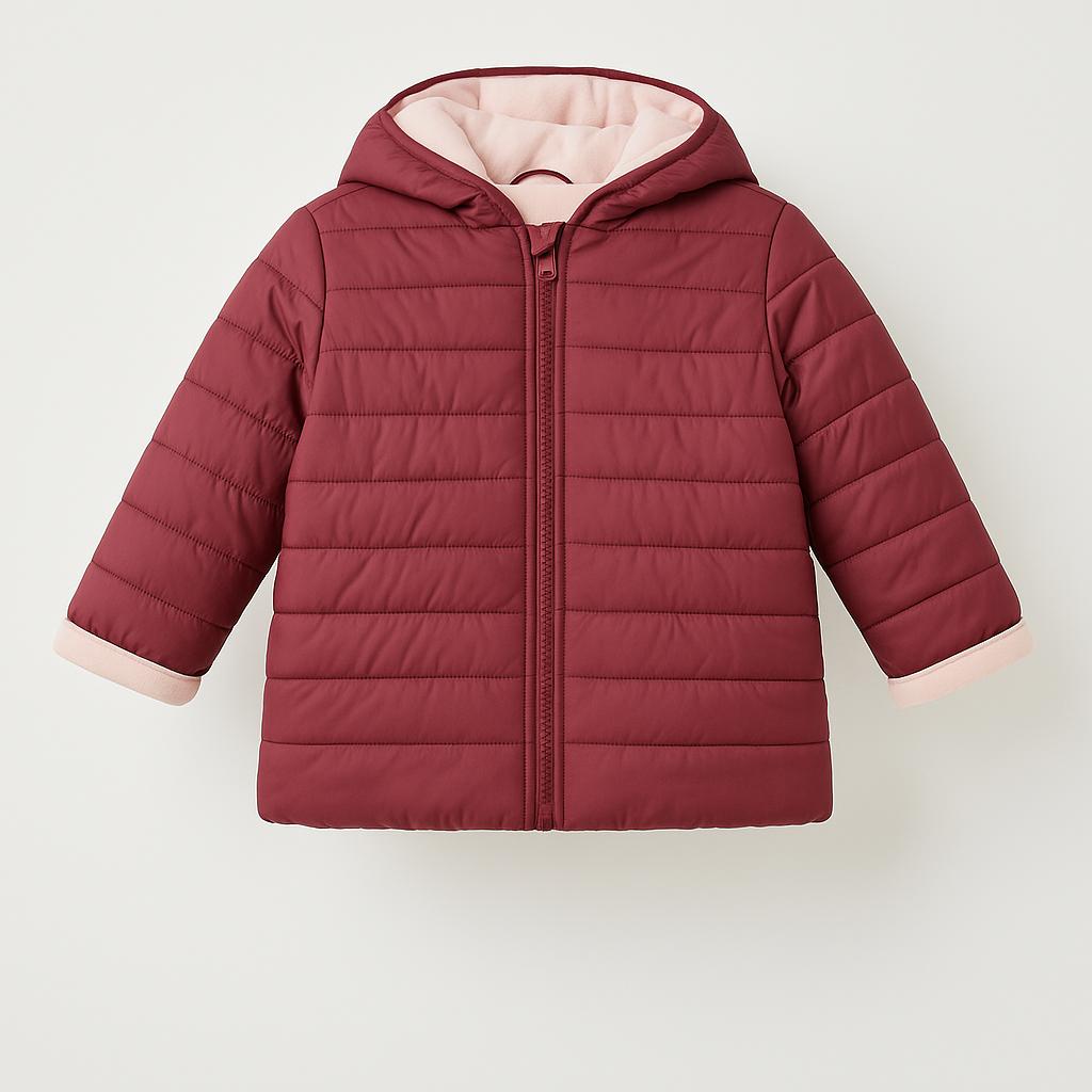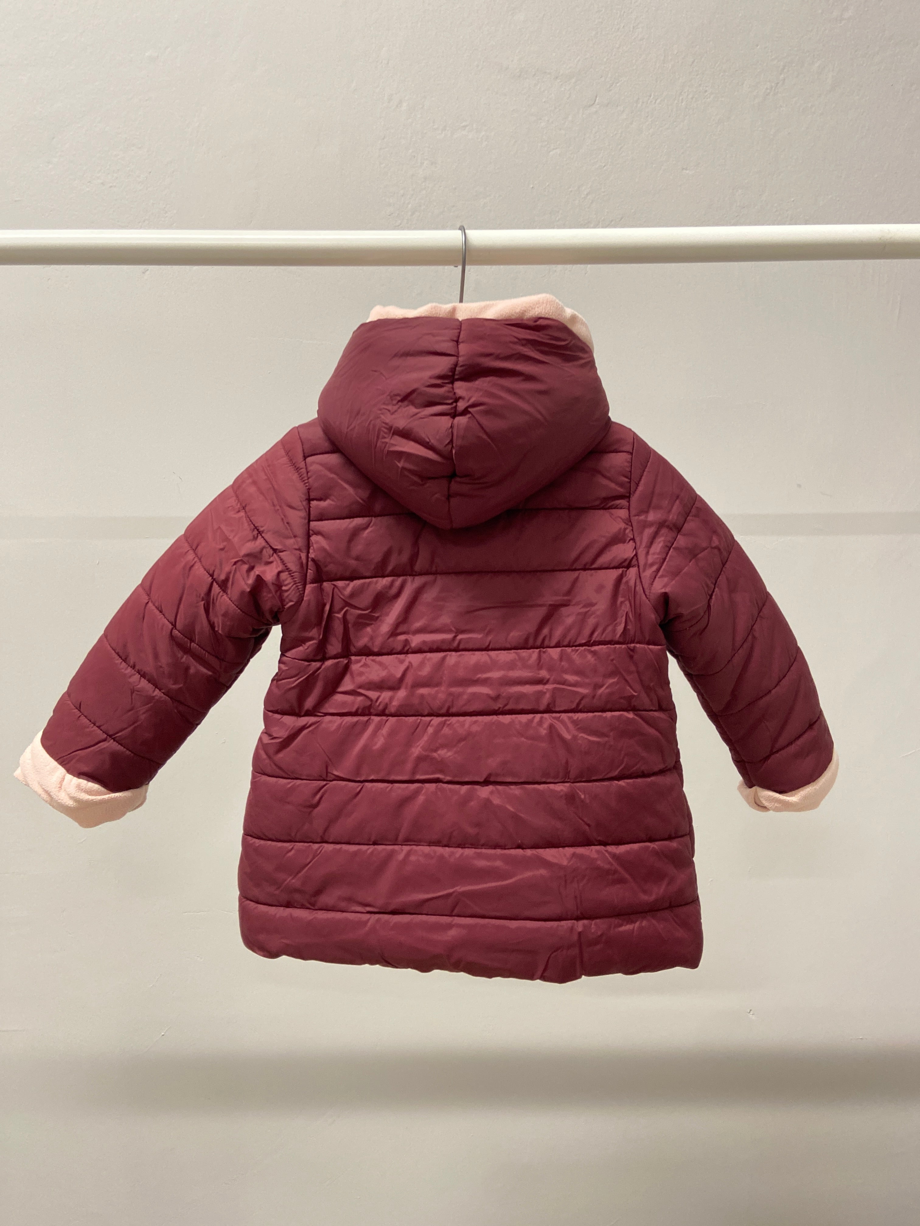 Questo adorabile giaccone in tonalità bordeaux è l'ideale per tenere al caldo i piccoli durante le giornate fredde! Con un design pratico e accogliente, presenta una comoda cappuccio e una delicata fodera rosa che aggiunge un tocco di dolcezza. La struttura leggera e imbottita garantisce comfort e libertà di movimento, perfetta per giocare all'aperto. Nonostante sia un capo usato, si presenta in ottime condizioni, pronto per essere indossato da un piccolo esploratore! Un must-have per affrontare l'inverno con stile e calore!