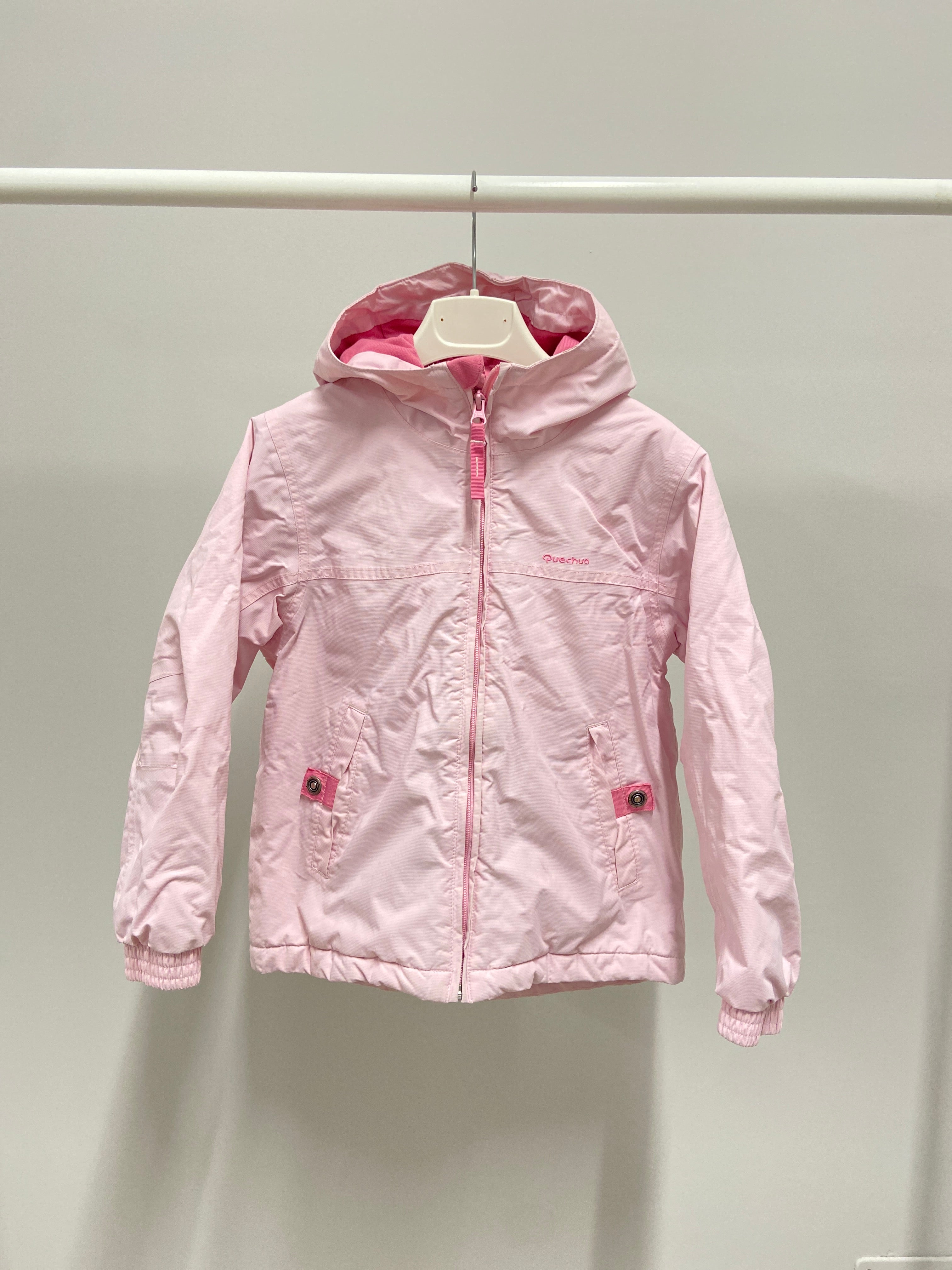 Questo giubbotto rosa di marca Peppa Pig è il compagno ideale per le avventure all'aperto! Realizzato in un materiale leggero, con una comoda fodera interna, è perfetto per le giornate fresche. Il colore dolce e vivace è perfetto per le piccole sognatrici, mentre il cappuccio offre protezione dalla pioggia. Le pratiche tasche anteriori sono ideali per riporre tesori e piccole sorprese. Nonostante sia usato, il giubbotto è in ottime condizioni, pronto a garantire comfort e stile durante ogni passeggiata, rendendo ogni giornata speciale!
