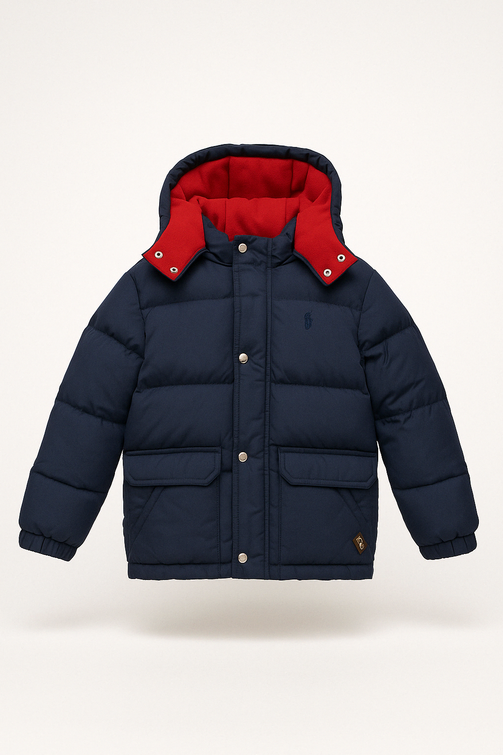 Questa giacca a vento di marca Ralph Lauren è un vero protagonista dell'inverno! Caratterizzata da un elegante blu navy con dettagli in rosso brillante, offre calore e comfort per le avventure all'aperto. Il design trapuntato e il cappuccio rimovibile garantiscono protezione e stile. Perfetta per i piccoli esploratori, questa giacca usata è ancora in ottime condizioni e pronta a accompagnare ogni piccola avventura, sia nei giorni di pioggia che di sole! Un must-have per il guardaroba invernale!