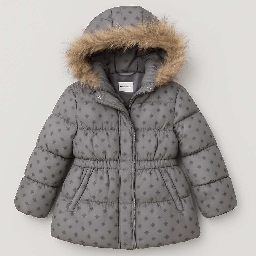 Questo adorabile giubbotto imbottito grigio è perfetto per le giornate invernali! Decorato con un delicato motivo di stelle, aggiunge un tocco magico a ogni look. La comoda cintura in vita consente di adattarlo perfettamente e mantenere il calore. Il cappuccio con pelliccetta rimovibile non solo offre protezione dal freddo, ma rende anche il giaccone super trendy! Nonostante sia un capo usato, si presenta in ottime condizioni, pronto ad accompagnare le piccole avventuriere nelle loro esplorazioni invernali. Un must-have per un guardaroba caldo e stiloso!