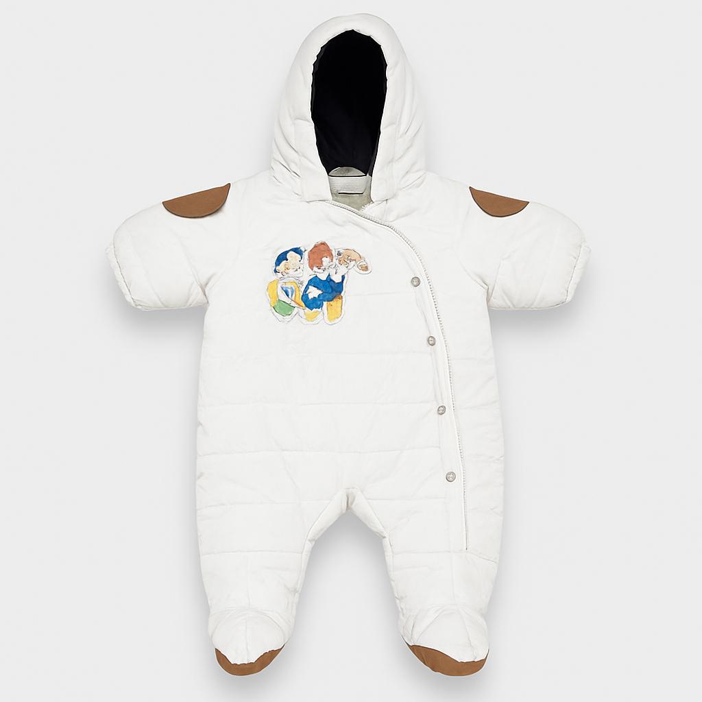 Questo adorabile tutone bianco è l'ideale per tenere il tuo piccolo al caldo durante le giornate fredde! Realizzato in un materiale morbido e imbottito, presenta un delizioso ricamo di simpatici personaggi che riportano a momenti di gioia infantile. Con una comoda chiusura a zip e piedi coperti, garantisce praticità durante i cambi. Il cappuccio avvolgente protegge dalla brezza invernale, mentre i dettagli marroni sulle spalle aggiungono un tocco di stile. Nonostante sia usato, si presenta in ottime condizioni, pronto per accompagnare le avventure del tuo bambino con amore e confort! Perfetto per passeggiate e giochi all'aperto, sarà un must per il guardaroba invernale!