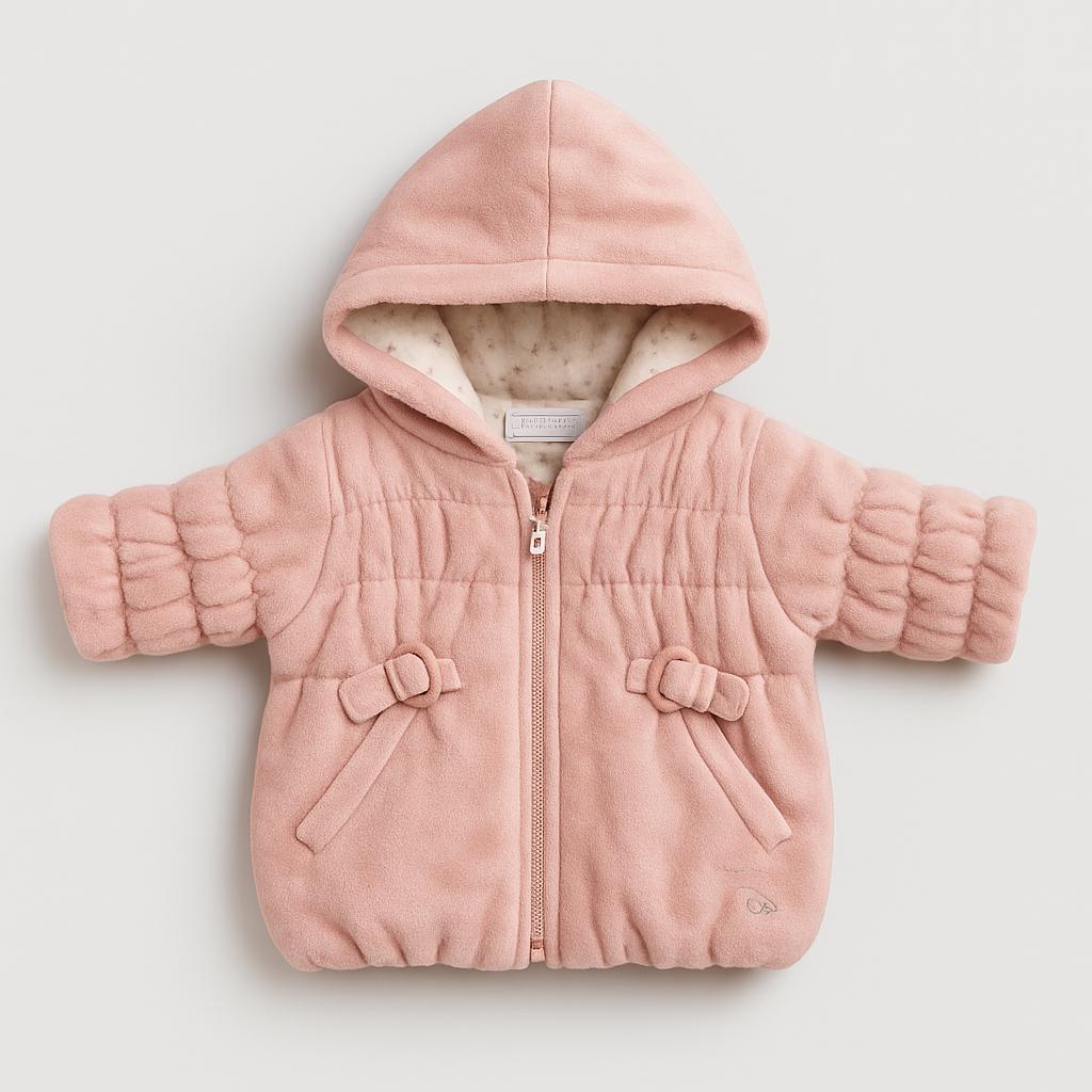 Questo adorabile giubbotto per bambini è perfetto per le giornate più fresche! Realizzato in morbido materiale peloso di un dolce color rosa, offre calore e comfort a ogni piccola esploratrice. Il design ha una pratica chiusura con zip e una comoda cappuccio che protegge dal vento.