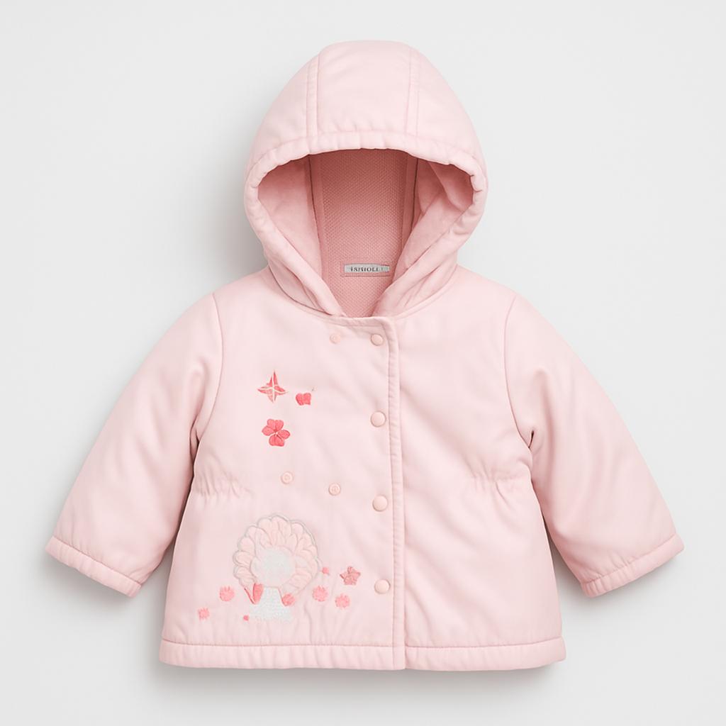 Questo adorabile giubbotto rosa è perfetto per tenere al caldo la tua piccola durante le giornate fresche! Realizzato in un materiale morbido e confortevole, presenta un bel cappuccio con interno in cotone che offre ulteriore calore e coccole. Le delicate decorazioni floreali sul davanti aggiungono un tocco di dolcezza, rendendo questo capo irresistibile. La chiusura a bottoni frontale e il taglio ampio permettono una vestibilità comoda, ideale per attive esploratrici. Nonostante sia usato, il giubbotto è in ottime condizioni e pronto per accompagnare la tua bambina in nuove avventure!