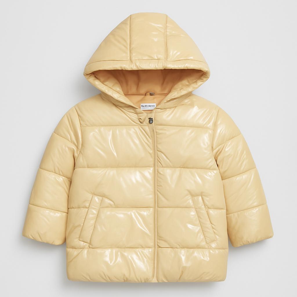 Questo adorabile piumino beige lucido è perfetto per tenere caldo il tuo piccolo durante le fredde giornate invernali! Con un design alla moda e un accogliente cappuccio, questo giubbotto è realizzato in un materiale leggero e resistente. Le maniche morbide e l'imbottitura soffice assicurano comfort e libertà di movimento, ideale per le esplorazioni invernali. Nonostante sia un capo usato, presenta ottime condizioni e un aspetto trendy. Un must-have per ogni piccolo avventuriero che desidera rimanere stiloso e caldo!