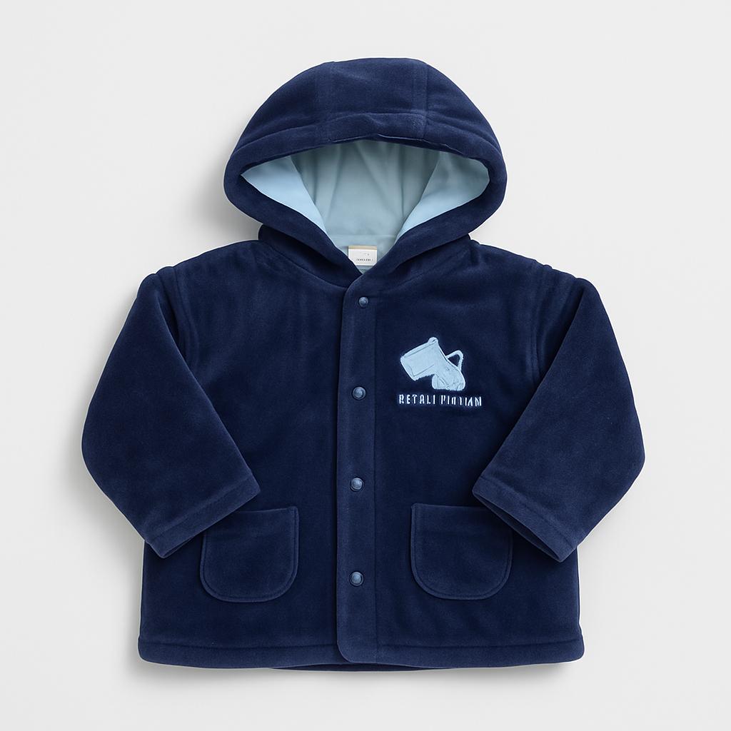 Questo adorabile giubbotto in morbido pile blu navy è perfetto per tenere al caldo i più piccoli durante le giornate fresche! Con una comoda chiusura a bottoni e un vivace cappuccio, la giacca è decorata con un dolce ricamo di un amico a quattro zampe, che aggiunge un tocco di tenerezza. Le tasche frontali sono ideale per riporre piccoli tesori o semplicemente per scaldare le manine. Nonostante sia un capo usato, si presenta in ottime condizioni e promette di diventare il compagno ideale per avventure invernali e giocose passeggiate all'aria aperta. Un must-have per ogni piccolo esploratore!