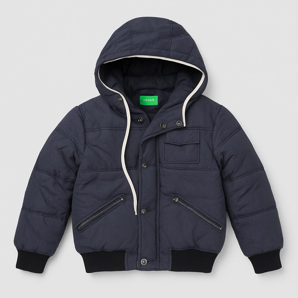 Questo affascinante giubbotto imbottito per bambini è l'alleato ideale per affrontare le giornate fresche! Di un elegante colore blu scuro, è realizzato in un tessuto morbido e resistente. La cappuccio avvolgente e le maniche elastiche garantiscono calore e comfort, perfetto per le avventure all’aperto.