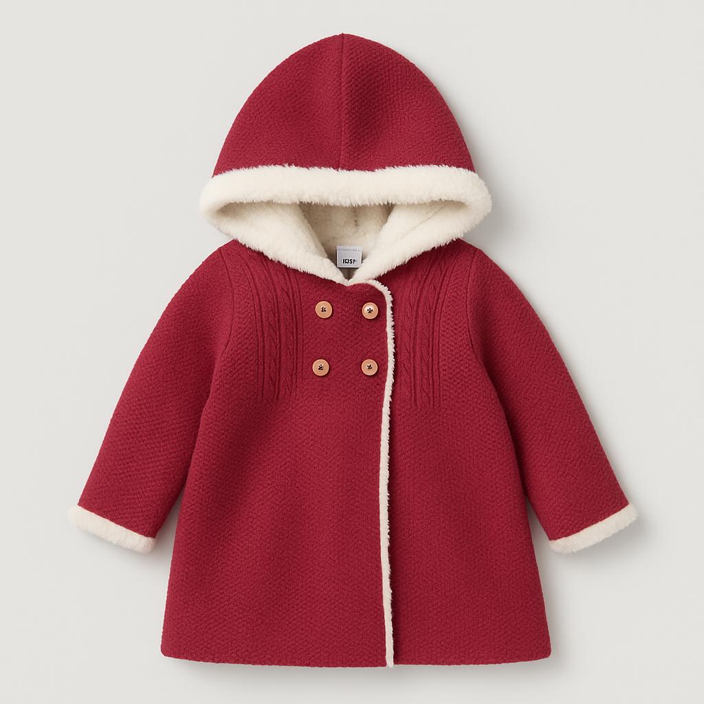 Questo adorabile cappottino in maglia bordeaux è perfetto per tenere al caldo le tue piccole nel freddo inverno! Realizzato con una morbida mistura di materiali, presenta un accogliente interno in pelliccia sintetica che regala comfort e tenerezza. Il design a doppio petto è impreziosito da due deliziosi bottoni in legno, mentre il cappuccio mantiene la testa ben protetta durante le giornate più fresche. Nonostante sia un capo usato, si presenta in ottime condizioni, pronto per nuove avventure! Un must-have per le piccole esploratrici, che unisce praticità e stile!