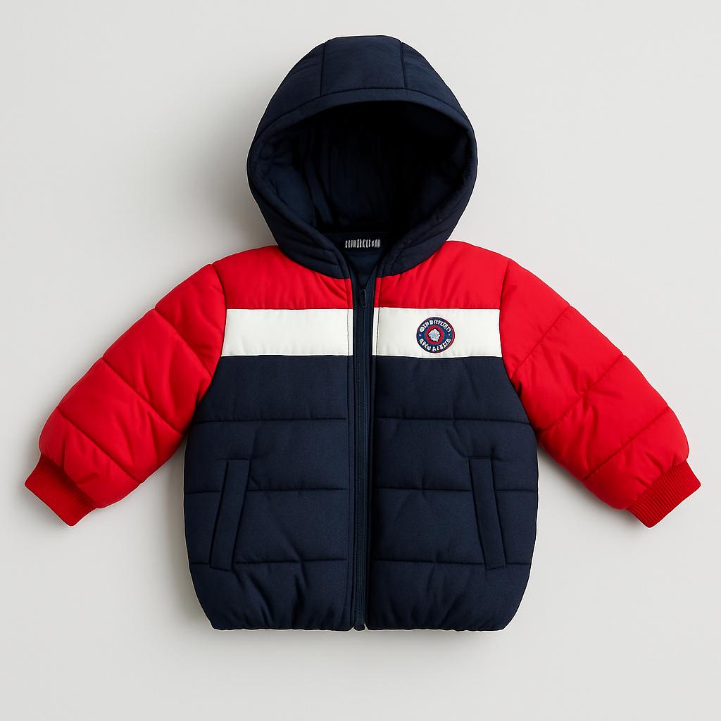 Questo caldo e accogliente giubbotto per bambini è perfetto per affrontare le giornate invernali! Realizzato con un mix di colori blu scuro e rosso vivace, presenta un design sportivo e alla moda. La zip frontale facilita l'indossarlo e il cappuccio offre una protezione extra dal freddo. Le maniche imbottite garantiscono comfort e calore, rendendolo ideale per giochi all'aperto o passeggiate in famiglia. Nonostante sia un capo usato, è in ottime condizioni e pronto per diventare il compagno di avventure di un piccolo esploratore!