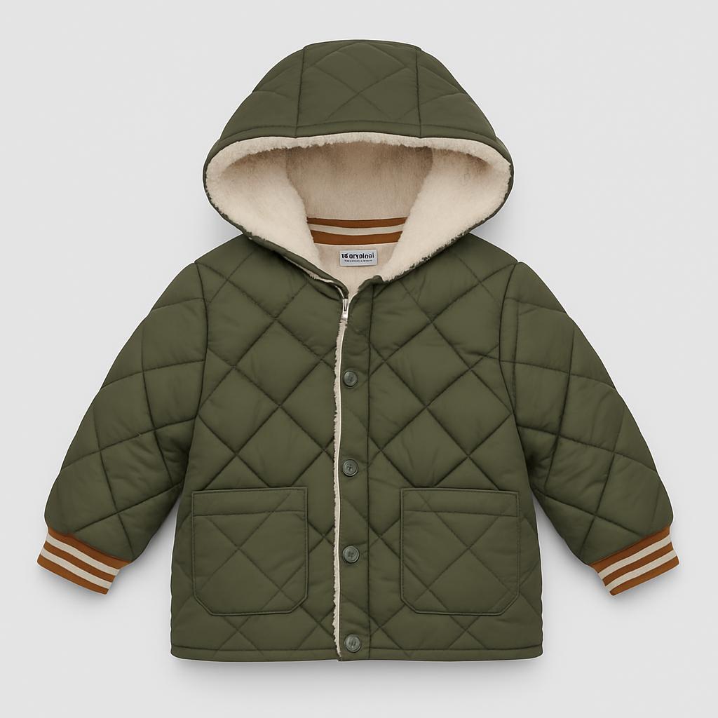Questa giacca imbottita di colore verde oliva è perfetta per tenere al caldo i piccoli durante l'inverno! Realizzata in un morbido materiale, presenta una fodera in pelliccia che offre comfort e coccole. Il cappuccio e i polsini a righe aggiungono un tocco sportivo e trendy, mentre il design trapuntato rende il capo stiloso e pratico. Nonostante sia usata, è in ottime condizioni e pronta a accompagnare le avventure invernali del tuo bambino. Un must-have per un look cool e accogliente!