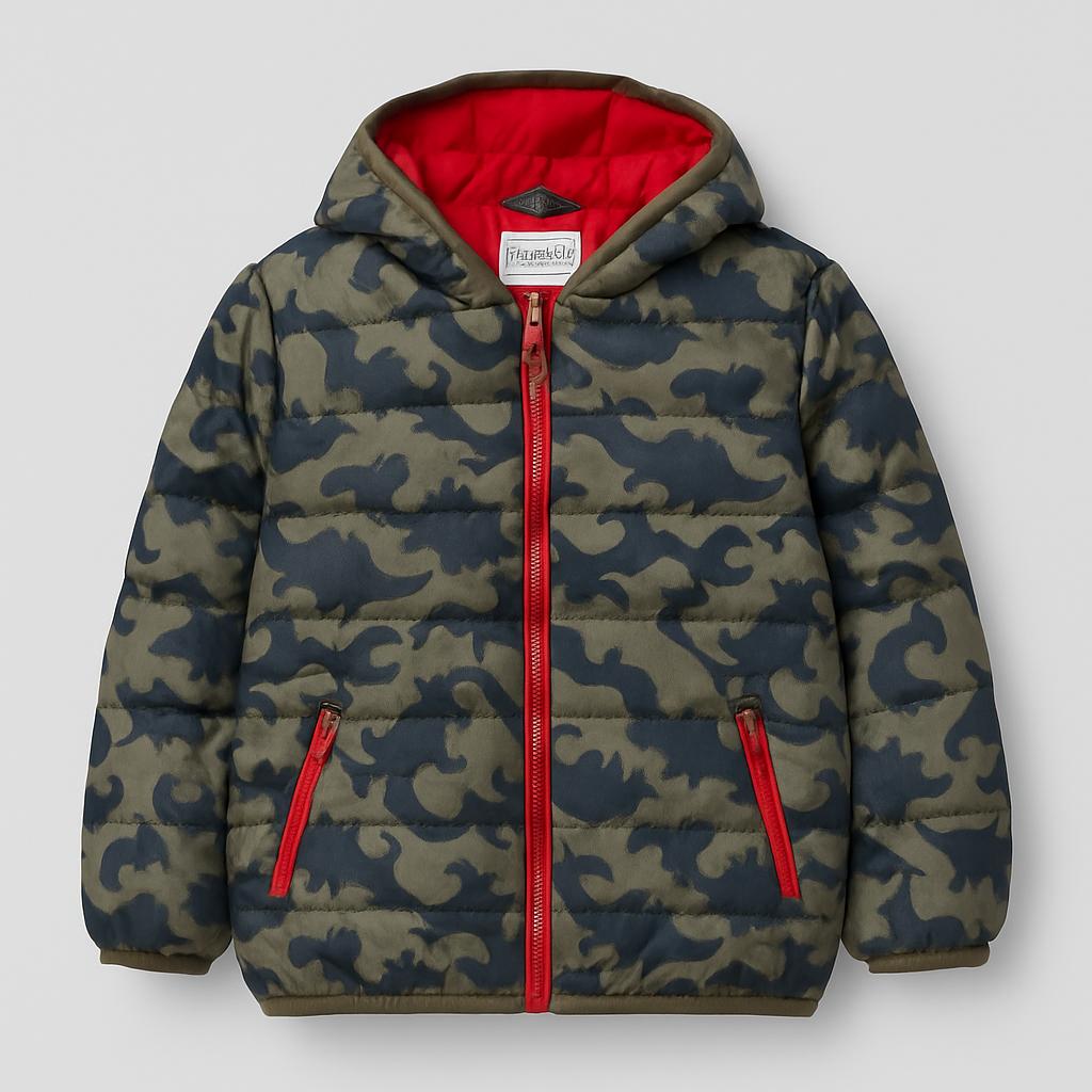 Questa giacca a vento dal design camo è l'alleato perfetto per i piccoli avventurieri! Con il suo motivo mimetico verde e grigio, unito a un caldo interno rosso, aggiunge un tocco di originalità a ogni look. La zip resistente e il cappuccio offrono una protezione extra durante le giornate più fresche. Leggera e comoda da indossare, è ideale per esplorare parchi o semplicemente per le giornate all'aperto. Nonostante sia un capo usato, si presenta in ottime condizioni, pronto per nuove avventure!