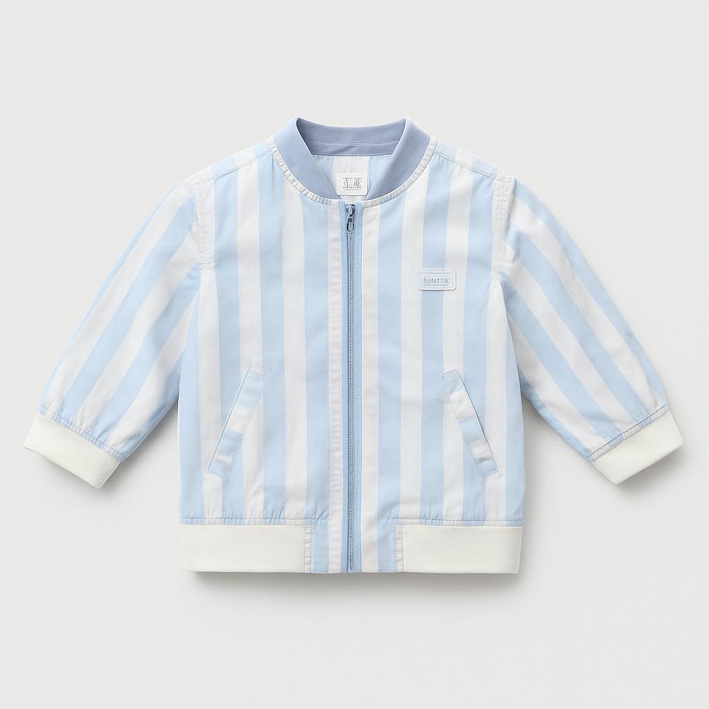 Questo adorabile giubbino in morbido tessuto azzurro a righe bianche è perfetto per i piccoli che amano stare alla moda! Con un elegante collo a cilindro e maniche lunghe, offre un look fresco e trendy, ideale per le fresche serate primaverili. Le tasche laterali sono pratiche e aggiungono un tocco di stile. Anche se è un capo usato, si presenta in ottime condizioni, pronto per accompagnare le avventure quotidiane. Perfetto da abbinare a jeans o gonne, questo giubbino renderà ogni outfit ancora più speciale!