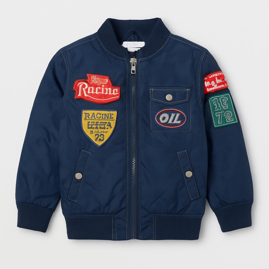 Scopri questa fantastica giacca usata, perfetta per i piccoli amanti delle avventure! Realizzata in un caldo tessuto blu navy, è decorata con vivaci toppe colorate che evocano l'emozione delle corse. I dettagli come le scritte "Racing" e "OIL" conferiscono un tocco di sportività e stile, rendendola ideale per i piccoli esploratori. La chiusura zip e le tasche frontali la rendono pratica e comoda, perfetta per ripararsi dal vento durante le avventure giornaliere. In ottime condizioni, questa giacca sarà un'aggiunta perfetta al guardaroba di ogni bambino!