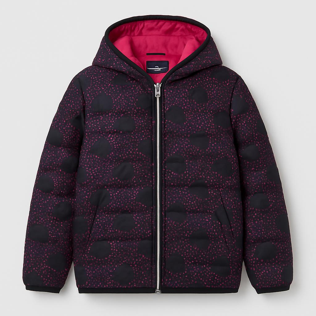 Scopri questa fantastica giacca a vento per bambini, perfetta per affrontare le giornate più fresche! Con un vivace design a pois rossi su sfondo nero, questa giacca è sia pratica che alla moda. Il contrasto interno rosa rende il look ancora più accattivante. Grazie alla grande zip e al cappuccio, offre protezione dal vento e dalla pioggia, mentre il materiale imbottito garantisce calore e comfort. Nonostante sia usata, la giacca si presenta in ottime condizioni, pronta per essere indossata da un piccolo esploratore! Un capo vivace e versatile da avere nel guardaroba!