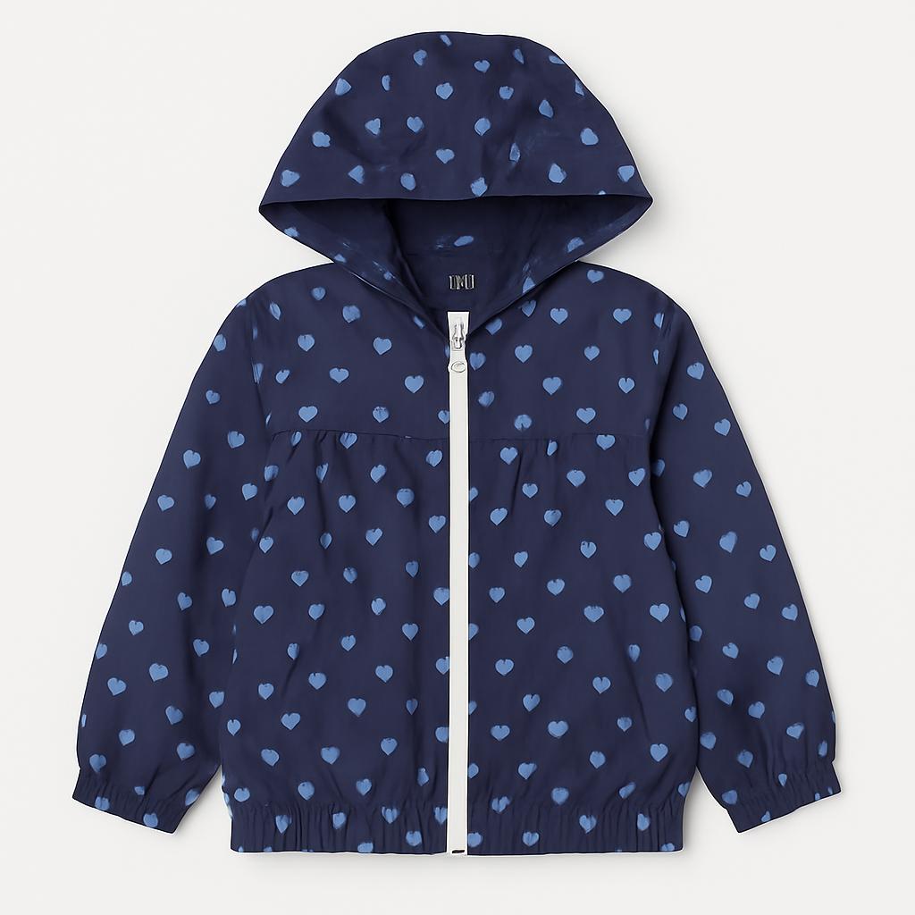 Questa giacca leggera è un vero sogno per le piccole esploratrici! Caratterizzata da un delizioso motivo a cuori blu su sfondo navy, combina stile e comfort. La chiusura a zip facilita l'abbigliamento, mentre il cappuccio protegge dalle intemperie. Perfetta per le fresche serate primaverili o le avventure all'aria aperta! Nonostante sia un capo usato, è in ottime condizioni ed è pronta a portare calore e allegria nel guardaroba della tua piccola. Un must-have per ogni piccola amante della moda!