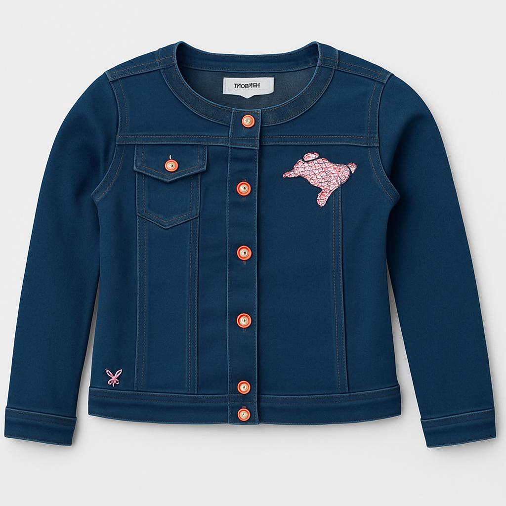 Questa deliziosa giacca di jeans offre un look stiloso e pratico per i più piccoli! Realizzata in denim morbido e resistente, presenta una fantastica applicazione floreale sul petto che cattura l'attenzione. I bottoni colorati aggiungono un tocco vivace, rendendola perfetta per ogni outfit. Le maniche lunghe e il taglio comodo assicurano calore e libertà di movimento durante le avventure quotidiane. Pur essendo un capo usato, è in ottime condizioni e pronto per regalare un tocco di allegria ai guardaroba delle piccole trendsetter! Un must-have per ogni piccola amante della moda!