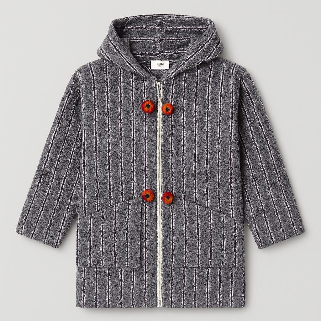 Questo accogliente poncho con cappuccio è il compagno perfetto per le avventure all'aperto! Realizzato in morbido tessuto misto, presenta una bellissima trama a righe grigie e viola che cattura l’attenzione. I colori vivaci dei pompon ai bottoni donano un tocco di allegria, mentre le pratiche tasche offrono spazio per piccoli tesori. La sua vestibilità ampia garantisce comfort e libertà di movimento, ideale per giocare e divertirsi. Anche se è un capo usato, si presenta in ottime condizioni, pronto per dare calore e stile alle giornate più fresche. Un must-have per i piccoli esploratori che amano esprimere la loro personalità!