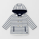 Questo adorabile giubbotto a righe bianche e blu è un capo perfetto per i piccoli esploratori! Realizzato in morbido cotone, presenta una comoda cappuccio e una chiusura con scintillanti bottoni oro che conferiscono un tocco di eleganza. Le righe vivaci donano carattere e stile, rendendo questo giubbotto ideale per le giornate fresche. Pur essendo usato, si presenta in ottime condizioni ed è pronto per accompagnare le avventure quotidiane del tuo bambino. Un vero pass-partout per un look casual e trendy!