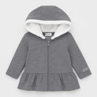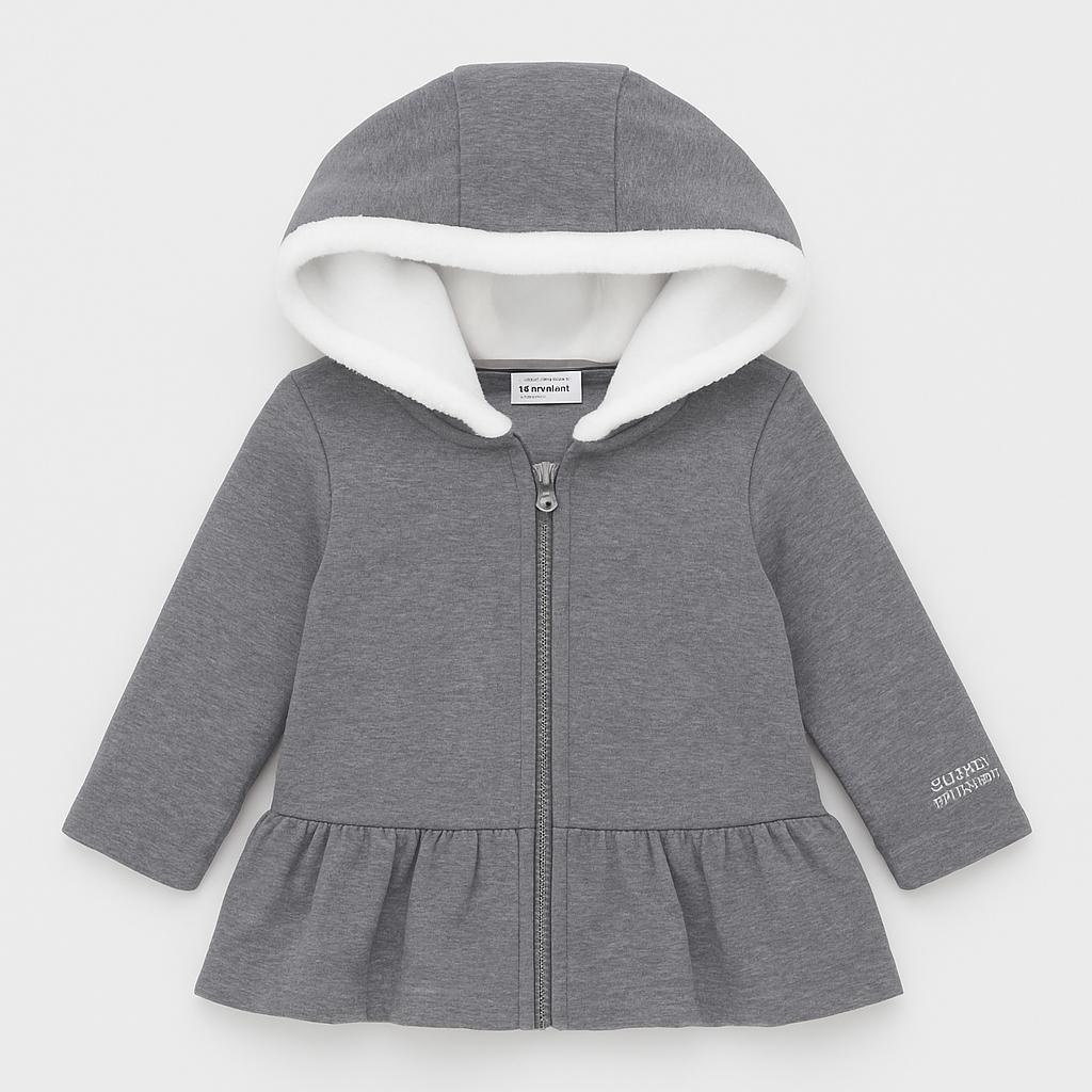 Questo adorabile giubbotto grigio con cappuccio è perfetto per le giornate fresche! Realizzato in morbido materiale, offre calore e comfort. La chiusura con zip e il delicato profilo a volant in fondo aggiungono un tocco di stile. Il cappuccio foderato in bianco conferisce un aspetto accogliente e giocoso. Nonostante sia usato, è in ottime condizioni e pronto per essere indossato da una piccola esploratrice! Un capo versatile e chic, ideale per un look pratico ma trendy.