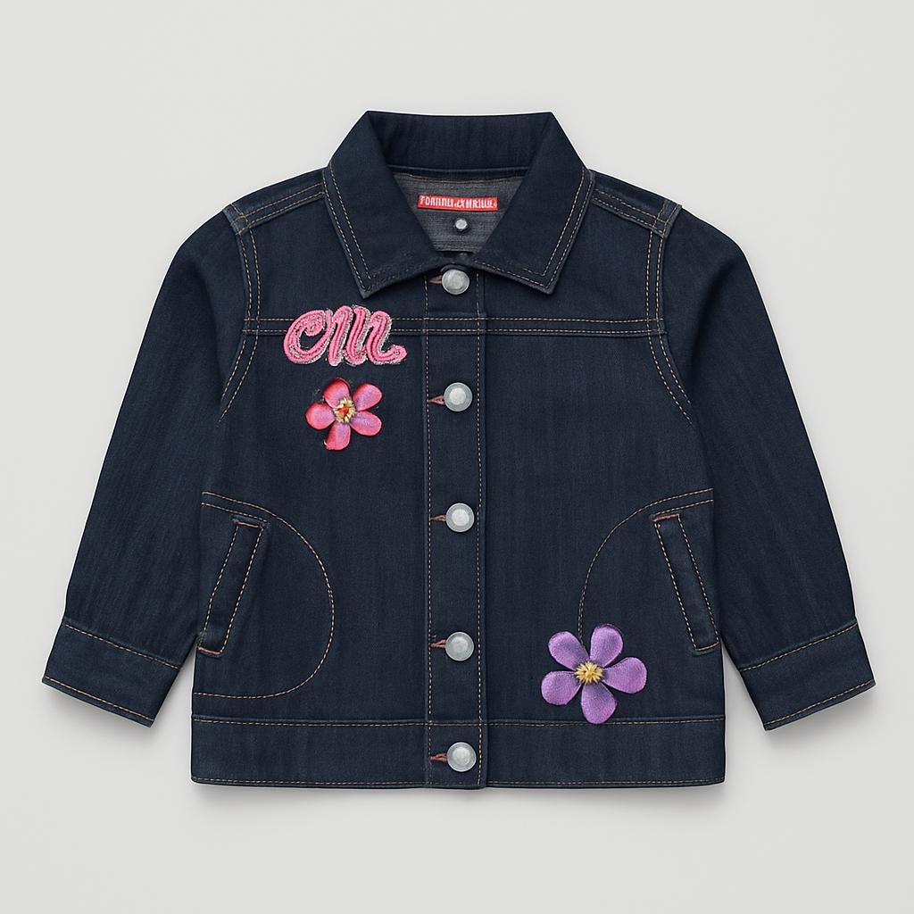 Questa deliziosa giacca di jeans per bambine è un complemento perfetto per il guardaroba della tua piccola! Realizzata in denim di alta qualità, presenta un design classico con un tocco di dolcezza grazie ai ricami floreali colorati sul petto. Le maniche lunghe e il taglio alla moda la rendono versatile, ideale per ogni stagione. I bottoni in metallo brillano come piccole stelle, aggiungendo un tocco chic e giocoso. Anche se usata, questa giacca si presenta in ottime condizioni, pronta per accompagnare la tua piccola in nuove avventure!