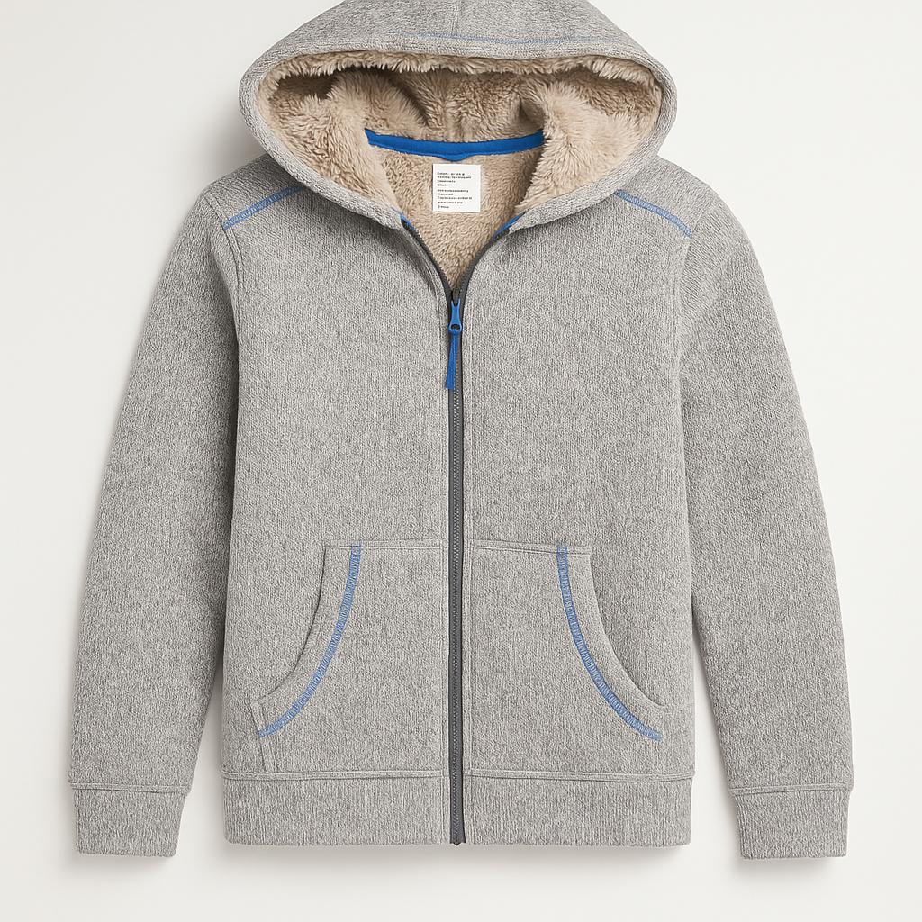 Scopri questa morbida felpa con cappuccio ideale per i giorni freschi! Realizzata in un caldo tessuto grigio, presenta un interno in pelliccia sintetica color crema che avvolge in un abbraccio di comfort. La cerniera frontale e le tasche laterali la rendono pratica e funzionale, perfetta per riporre piccoli tesori. I dettagli azzurri aggiungono un tocco di vivacità, rendendo questo capo stiloso e versatile. Nonostante sia usata, è in ottime condizioni e pronta per accompagnare ogni avventura del tuo bambino! Un must-have per un look casual e trendy!