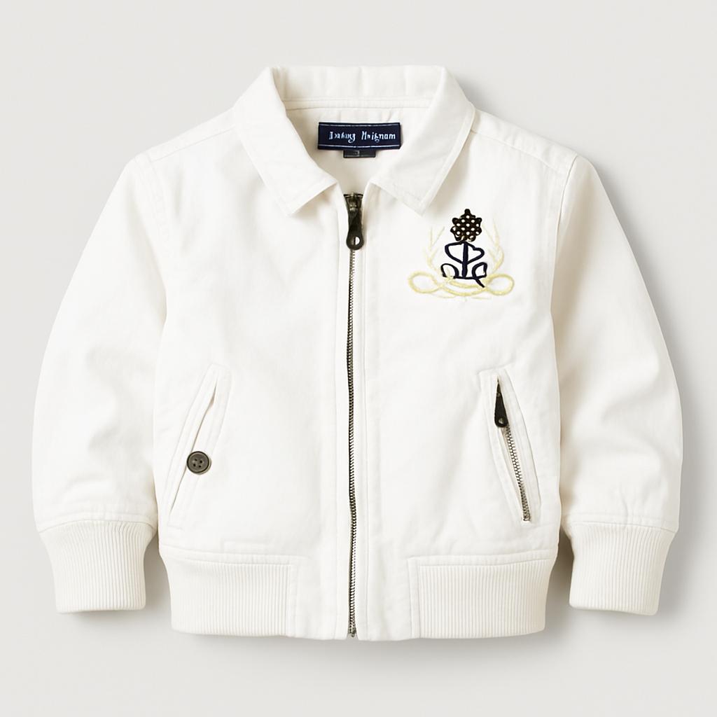 Questo elegante giubbotto bianco per bambini è l'aggiunta perfetta al guardaroba del tuo piccolo! Con una zip comoda e tasche laterali, è ideale per le fresche sere d'estate. Le maniche a sbuffo e il dettaglio ricamato di classe conferiscono a questo capo un tocco sofisticato. Nonostante sia usato, si presenta in ottime condizioni e sarà perfetto per completare tanti look, da quelli casual a quelli più ricercati. Un must-have per ogni piccola fashionista!