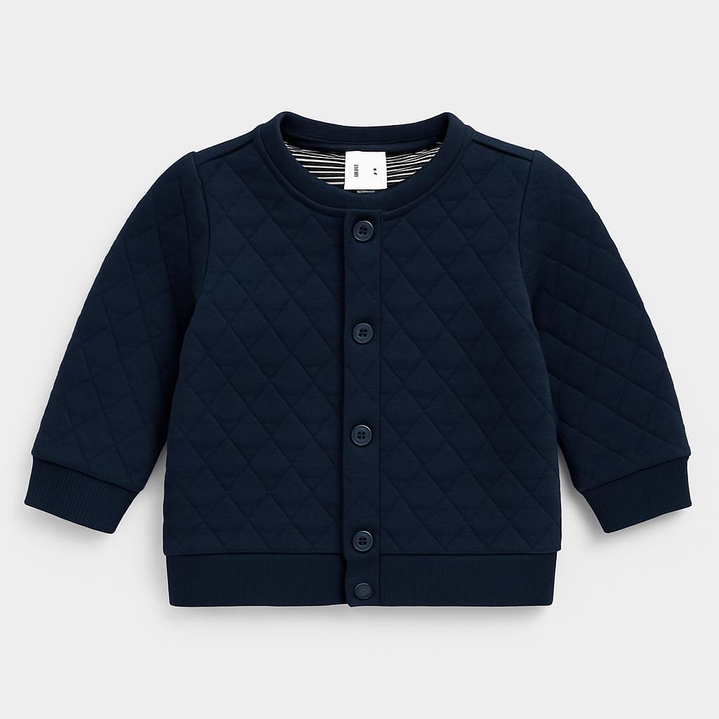 Questo caldo e accogliente cardigan a maniche lunghe è perfetto per tenere al caldo i piccoli durante le giornate fresche! Realizzato in morbido cotone, il suo elegante colore blu navy è facile da abbinare a qualsiasi outfit. La trama goffrata conferisce un tocco di originalità, mentre i bottoni frontali lo rendono pratico da indossare. Comodo e stiloso, è ideale per le avventure quotidiane o una passeggiata nel parco. Nonostante sia un capo usato, si presenta in ottime condizioni e sarà un'ottima aggiunta al guardaroba del tuo bambino!