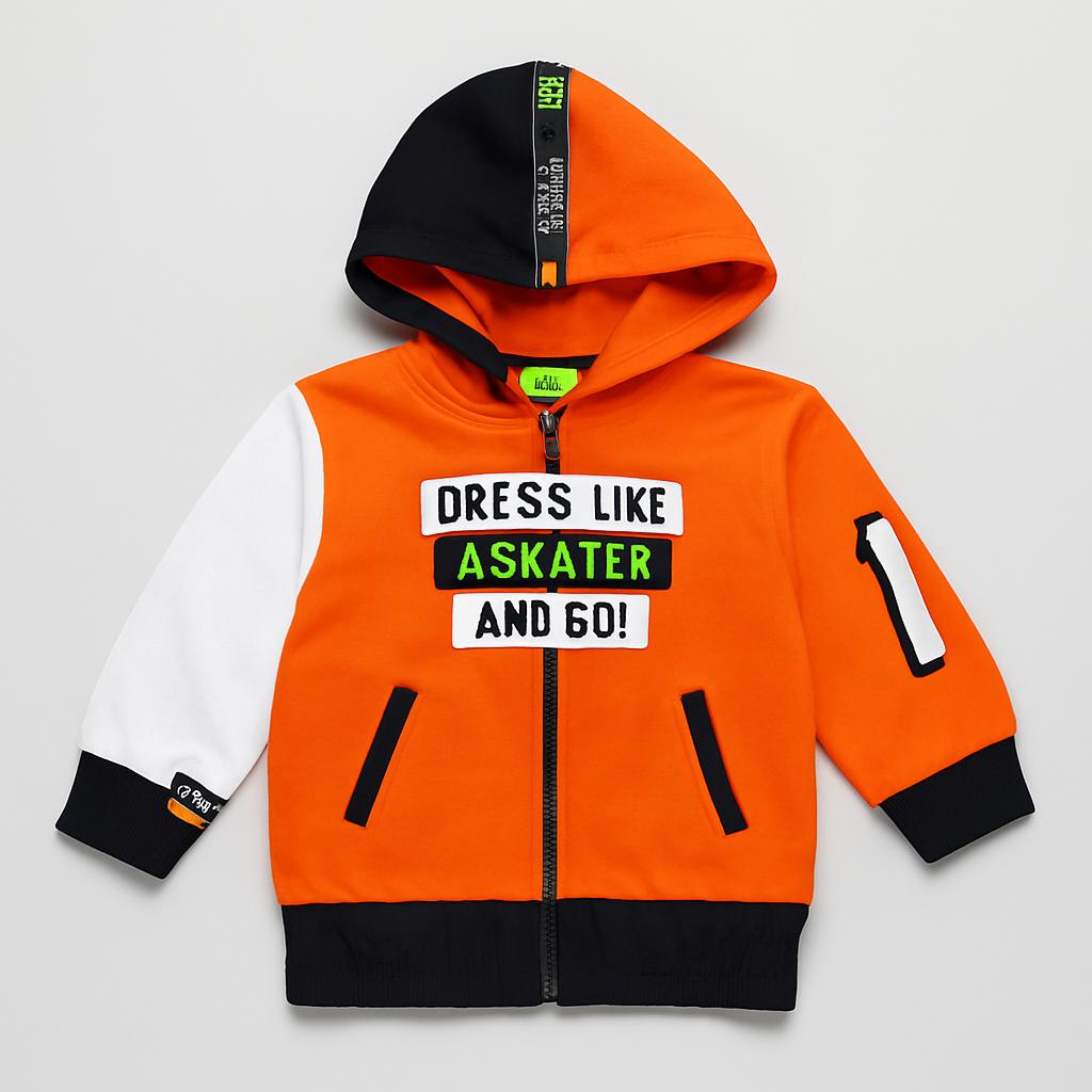 Questo vivace giubbotto con cappuccio di marca MEK è perfetto per i piccoli amanti dello skate! Con il suo audace mix di colori arancione, nero e bianco, porta un tocco di energia e stile al guardaroba. La scritta "DRESS LIKE A SKATER AND GO!" sul davanti invita all’avventura e al divertimento. Realizzato in morbido cotone, è comodo e pratico per ogni occasione, dalle passeggiate nel parco ai giochi con gli amici. Nonostante sia un capo usato, si presenta in ottime condizioni ed è pronto per essere indossato da un piccolo esploratore!