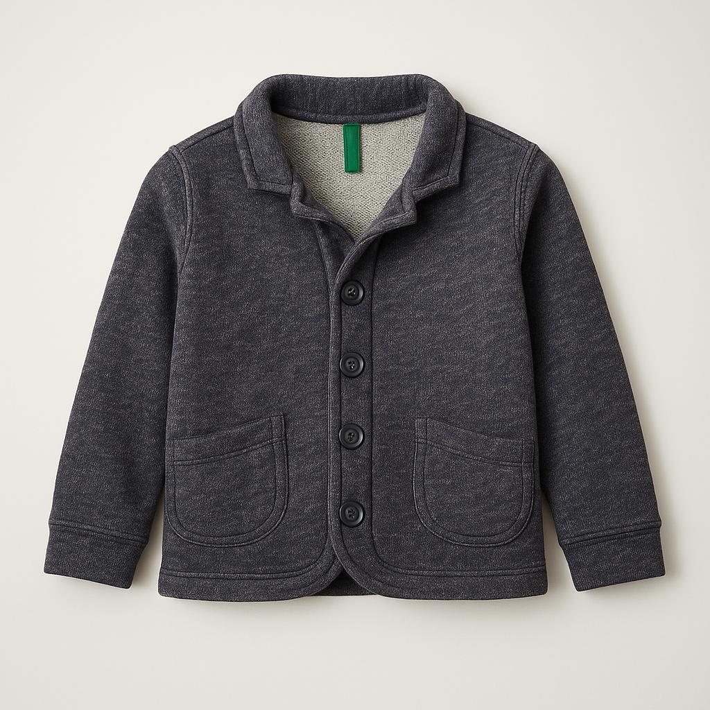 Questo simpatico cardigan grigio scuro è l'ideale per tenere al caldo i piccoli durante le fresche giornate. Realizzato in morbido tessuto, offre un comfort senza pari. Le sue pratiche tasche laterali e la chiusura con bottoni aggiungono un tocco di stile e funzionalità. Perfetto per completare un look casual o per essere indossato sopra una maglietta per un'uscita al parco, questo capo usato è in ottime condizioni e pronto per nuove avventure! Un must-have per i piccoli esploratori!
